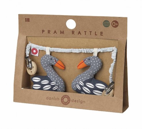Barnevognsophæng med svaner i mørke farver fra Franck & FischerMed et sjovt barnevognsophæng er I godt afhjulpet med underholdning til din baby, når I er på tur.