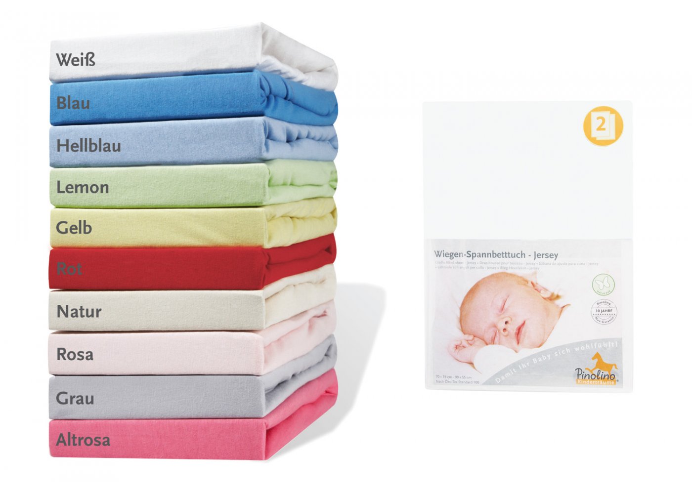 Pinolino stræklagen i hvidSæt med to stk. Jersey stræklagen i 100% bomuld til vugge, Bedside Crib og barnevogn.