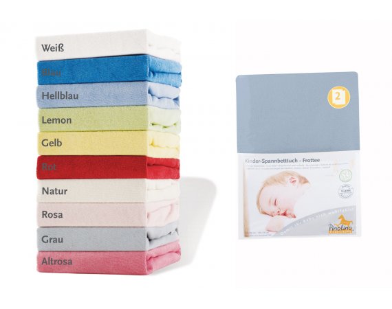Pinolino stræklagen til Babyseng og Juniorseng i lys blåFrotté stræklagen i 80% bomuld og 20% polyester