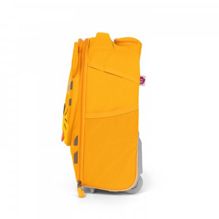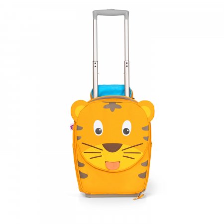 Kufferten lukkes med en dobbelt lynlås, har et stort rum og en indvendig lynlås lomme. Trollyen har en lynlås lomme fortil udformet som et tiger hoved. Tigerens tunge sidder fast med elastik, og når man trækker i den, kommer et fint navneskilt frem.