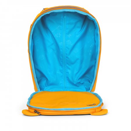 Kufferten har udvendig elastiklomme med plads til drikkeflaske. Den har en fast ryg og bund, en justerbar og aftagelig strop. Håndtaget kan indstilles i 3 højder, så den kan tilpasses barnets højde.