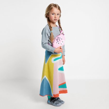 Smart og anvendelig bæltetaske med enhjørning motivEn fastsiddende taske er skøn at have til barnet, der bevæger sig meget. Både fordi den aldrig glemmes og fordi, den kan indeholde mange nyttige ting til turen. Tasken har et stort rum og lukkes med en lynlås for oven. Den har en justerbar rem med klikspænde, så den sidder godt fast. Tasken kan bruges både rundt om livet, på skulder eller bryst.