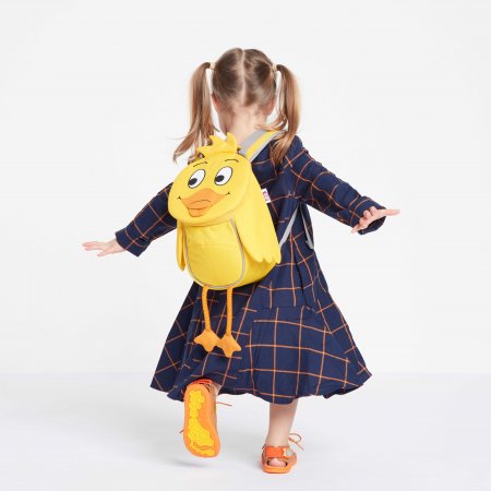 Smart, sjov og funktionel rygsæk i gul med and motiv til de mindste.