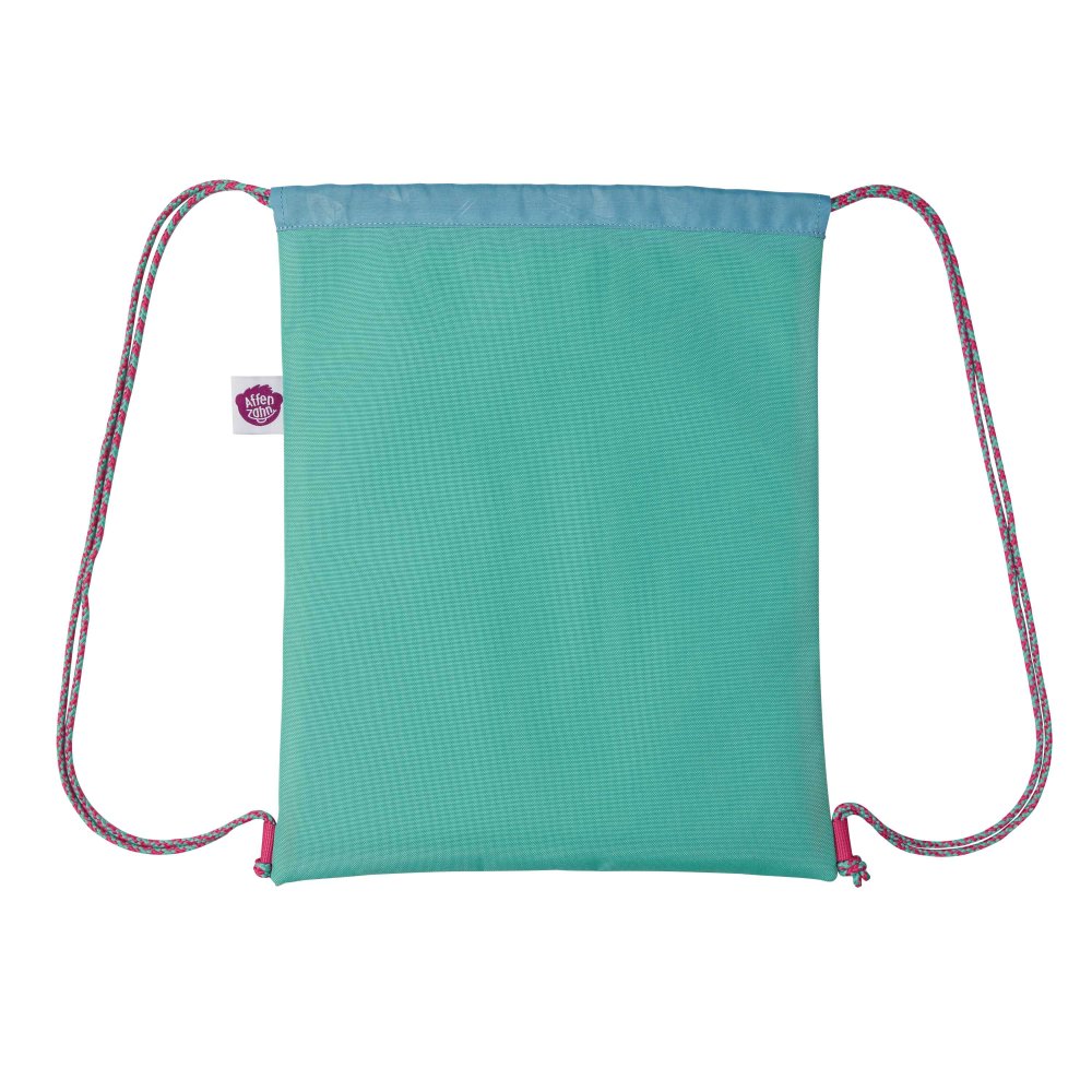 Tasken har et stort rum med snore til at lukke tasken med og til at bære den med. Tasken har fint plads til både gymnastiktøj, sko og håndklæde.
