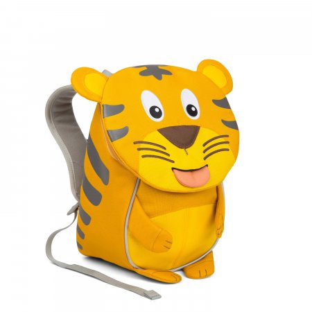 Smart lille børne rygsæk fra Affenzahn, TigerSjov, fræk og funktionel rygsæk i gul og brun farve formet som en tiger med ører, hale og fødder.