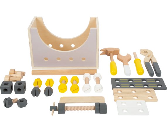 Med denne robuste værktøjskasse i træ har små håndværkere altid professionelt udstyr ved hånden, og kan starte reparationerne med det samme.