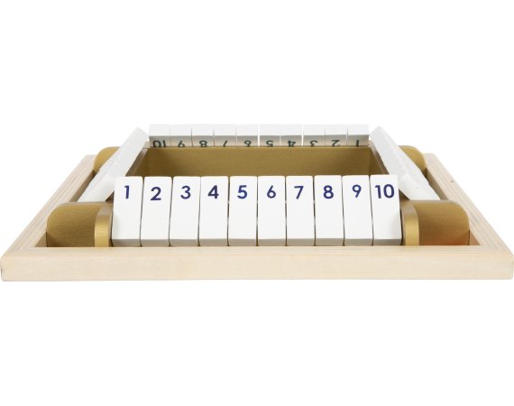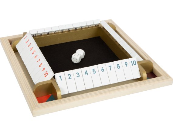 Shut the Box terningespil i flot look, trendy farver og masser af naturligt træ.