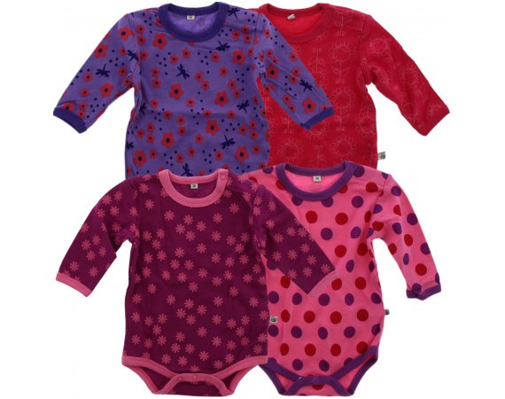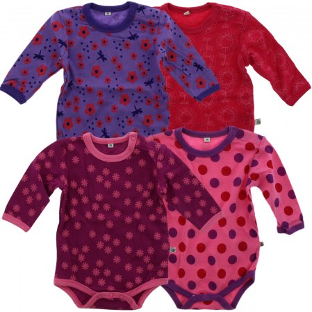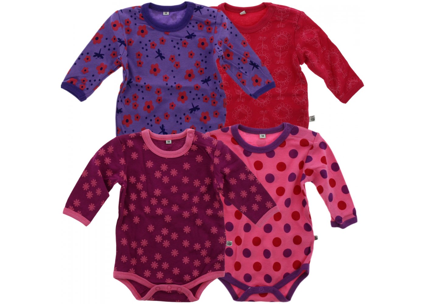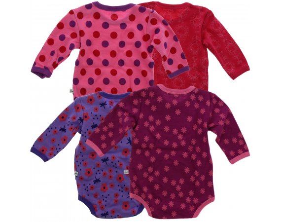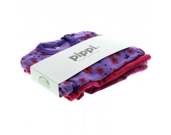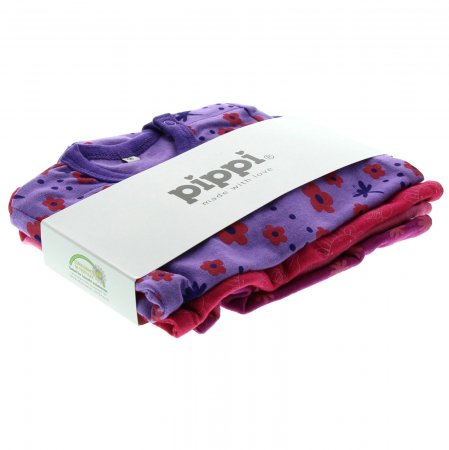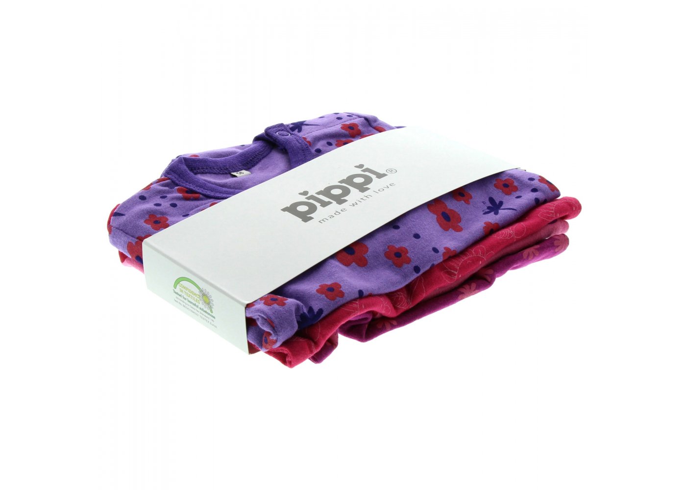 Pakke med 4 bodyer i rød, lilla og rosa fra Pippi.