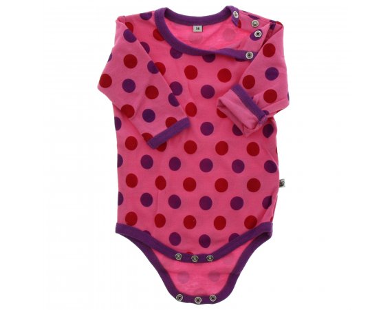 Bodyen er fremstillet i et blødt materiale, der giver en god pasform. Den lukkes med trykknapper på venstre skulder og mellem ben.
