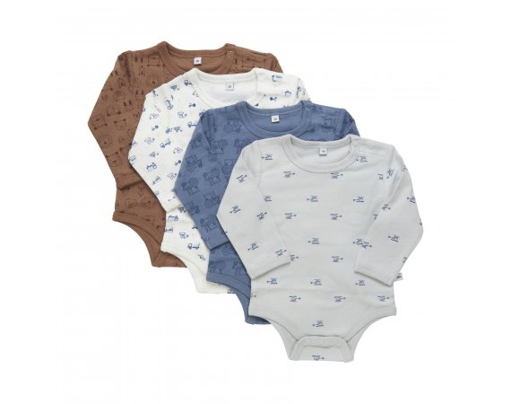 Pakke med 4 bodyer i brun, hvid og blå fra Pippi.