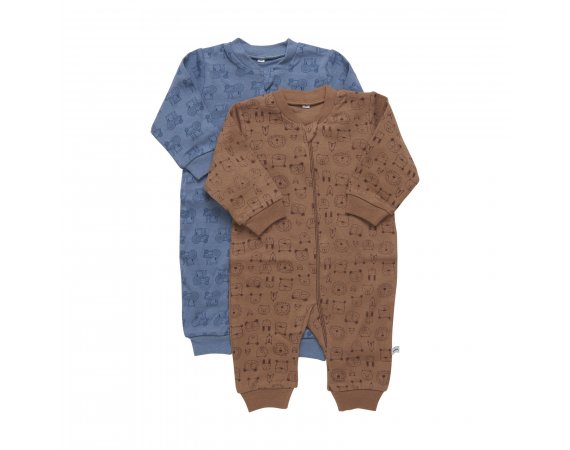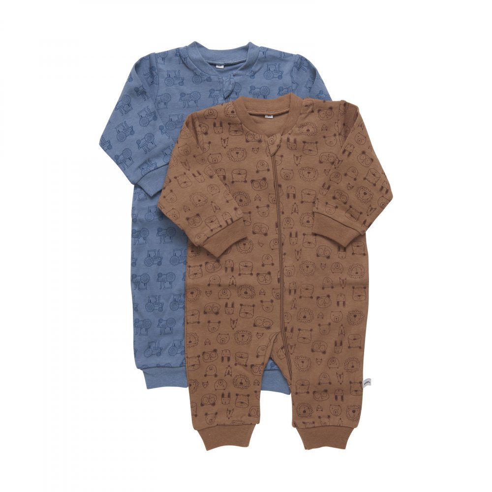 Pakke med to skønne langærmede natdragter i blå og brun fra Pippi.