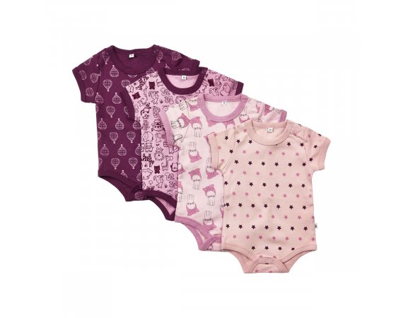 Smart og lækker body 4-pak fra Pippi, LilacEn body med korte ærmer er praktisk det meste af året, både forår, sommer og efterår.