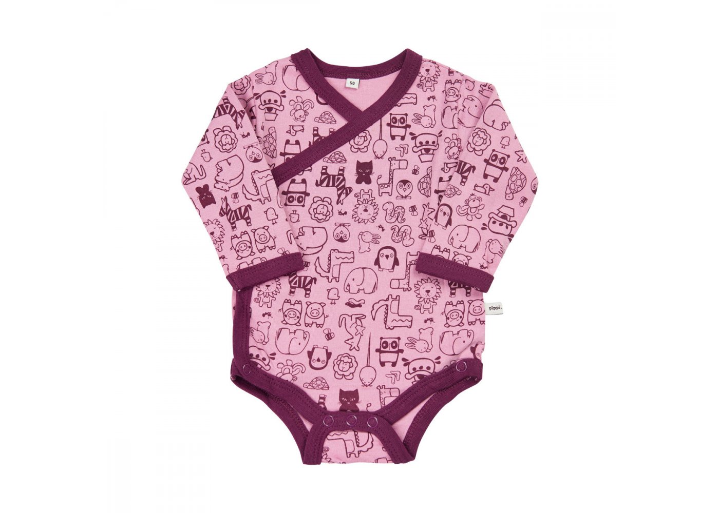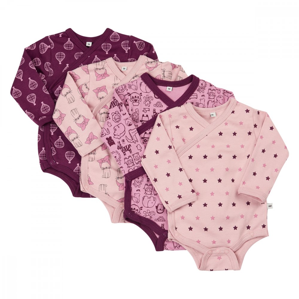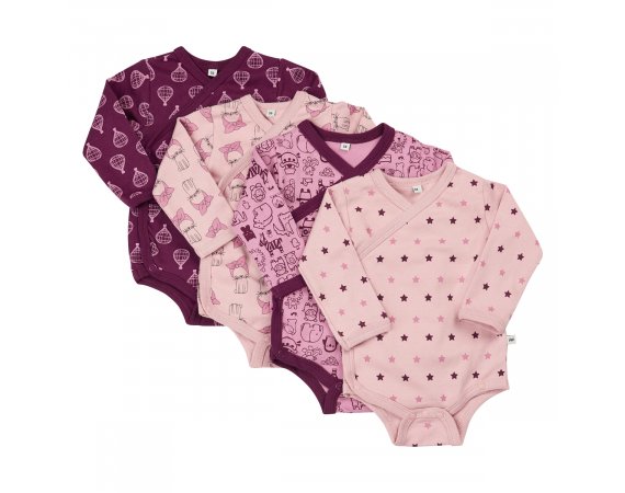 4-pak Slå-om body med lange ærmer fra Pippi, LilacSmart og lækker body fra Pippi med lange ærmer, som er praktisk både sommer og vinter.