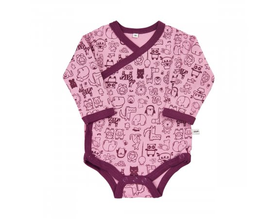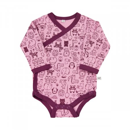 Bodyen har et smart slå-om udseende og knappes op i højre side med trykknapper. Der er også trykknapper mellem benene til bleskift.