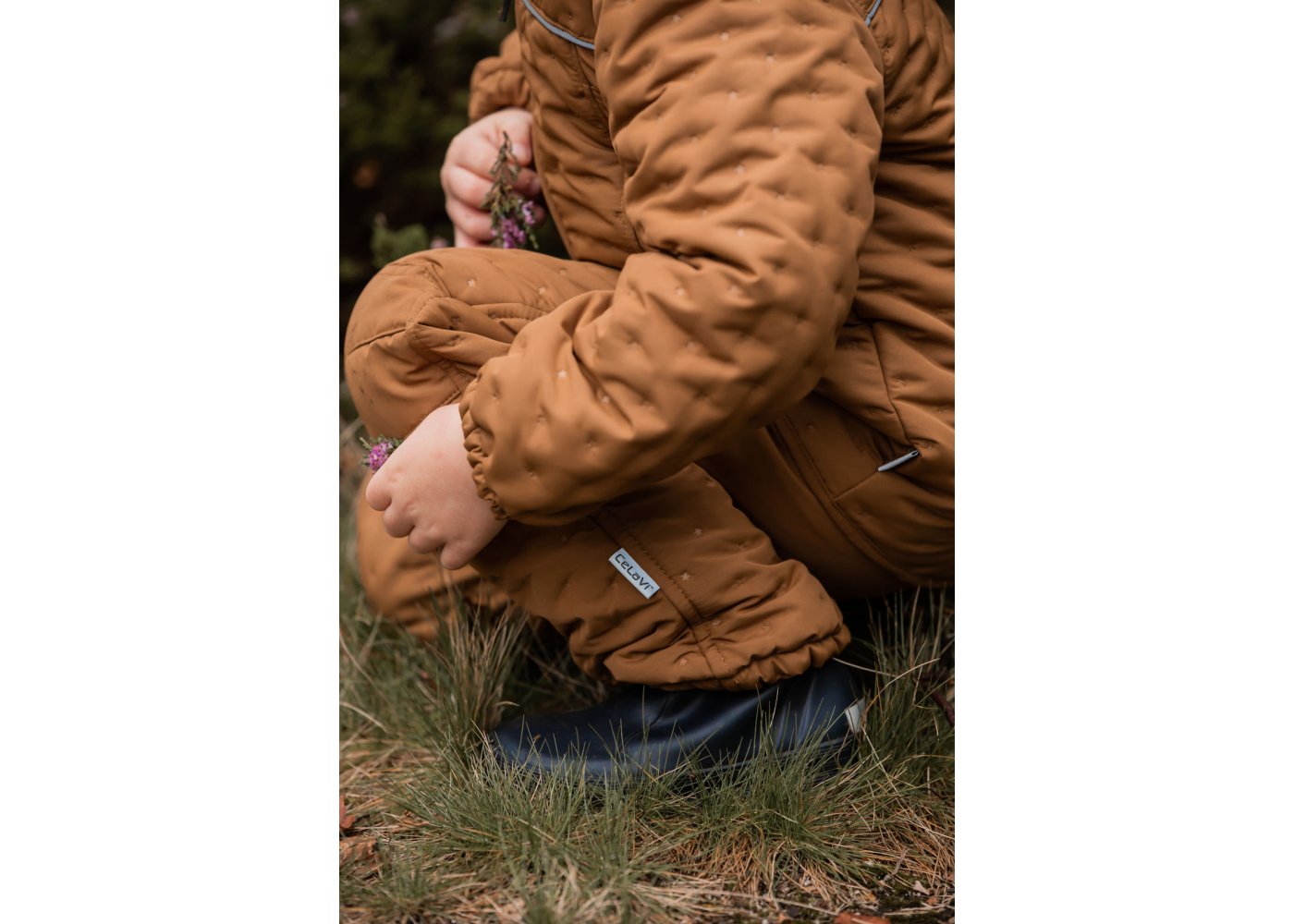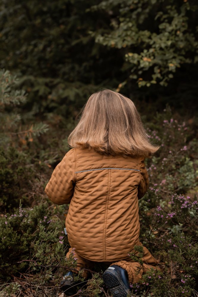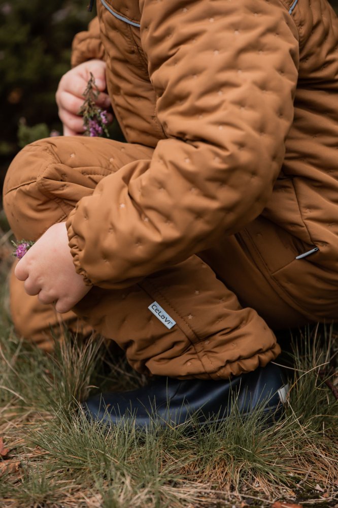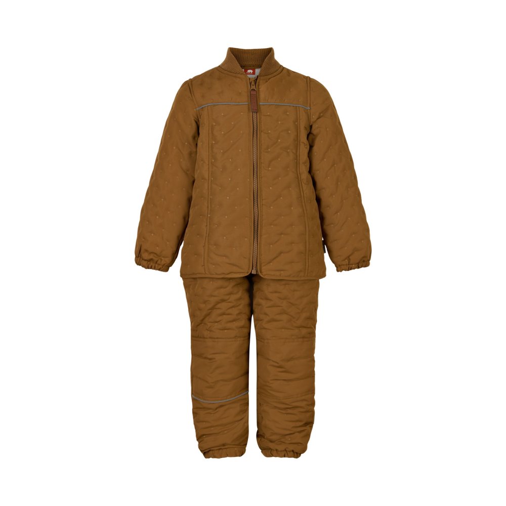 Skønt quiltet termosæt i brun med små stjernedetaljer i stoffet fra CeLaVi.