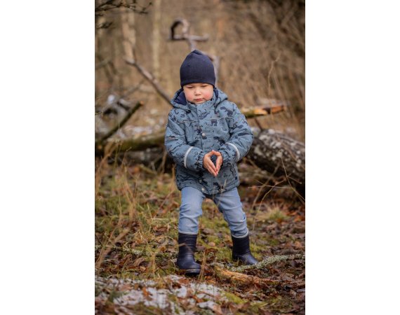 Huens yderside består af en fint strikket uldblanding, og indersiden er glatvævet bomuld. En skøn blanding, der kan holde en lille purk varm.