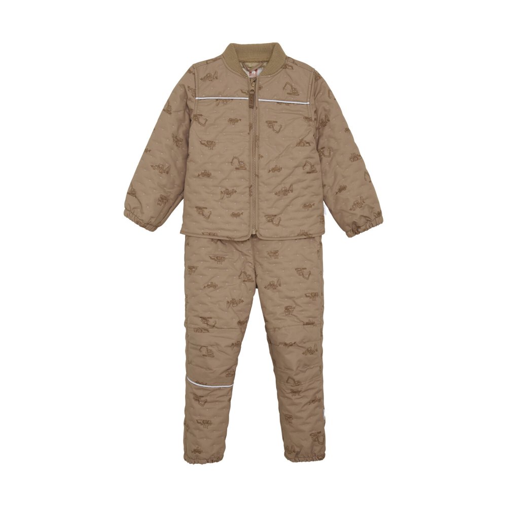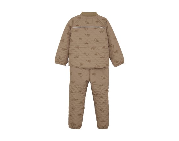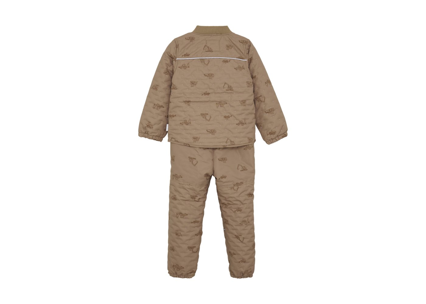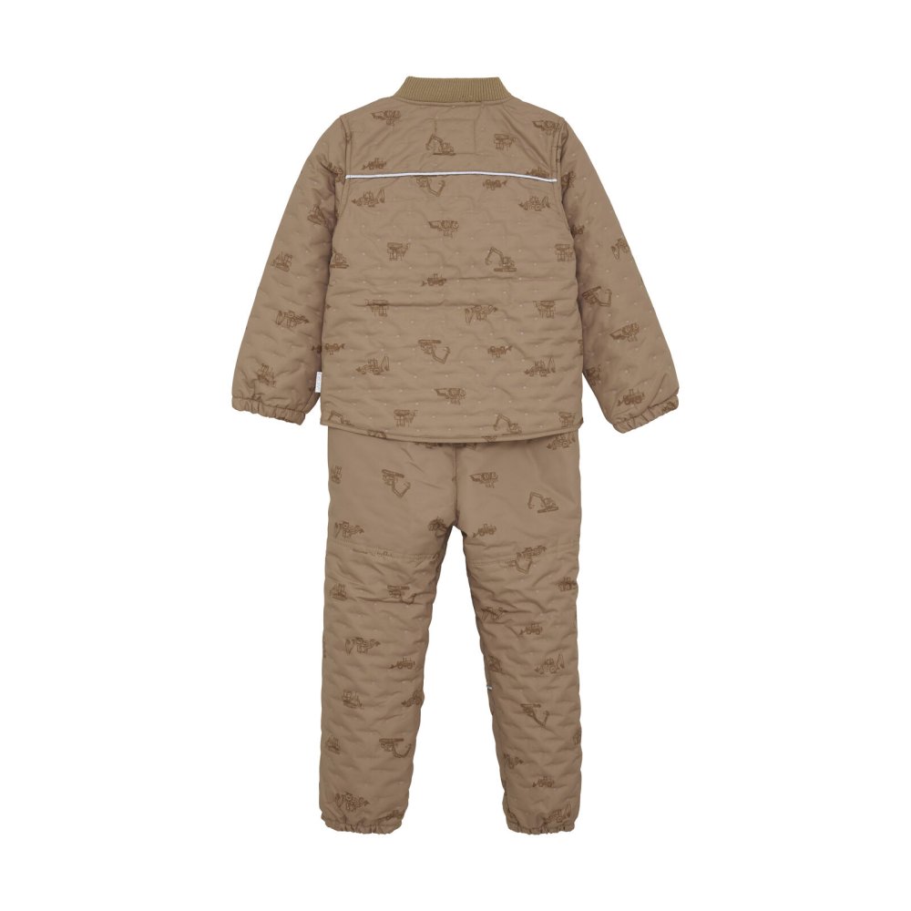 Skønt quiltet termosæt med bukser og jakke med sjove gravemaskiner fra CeLaVi.