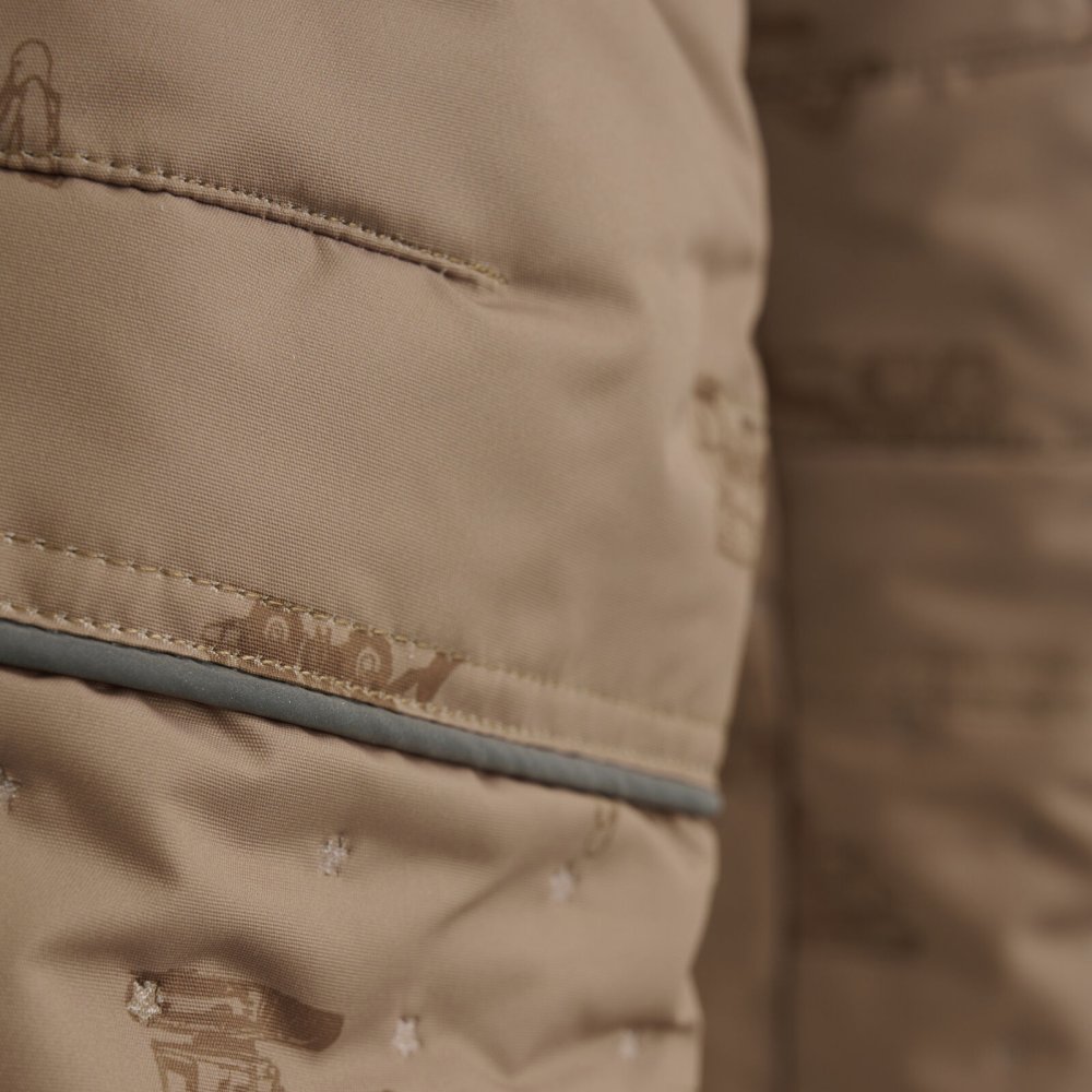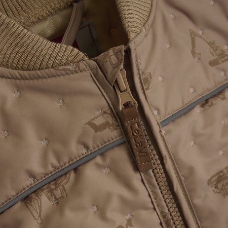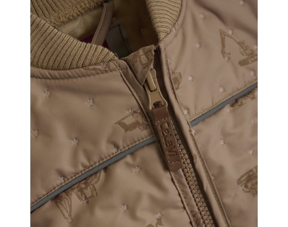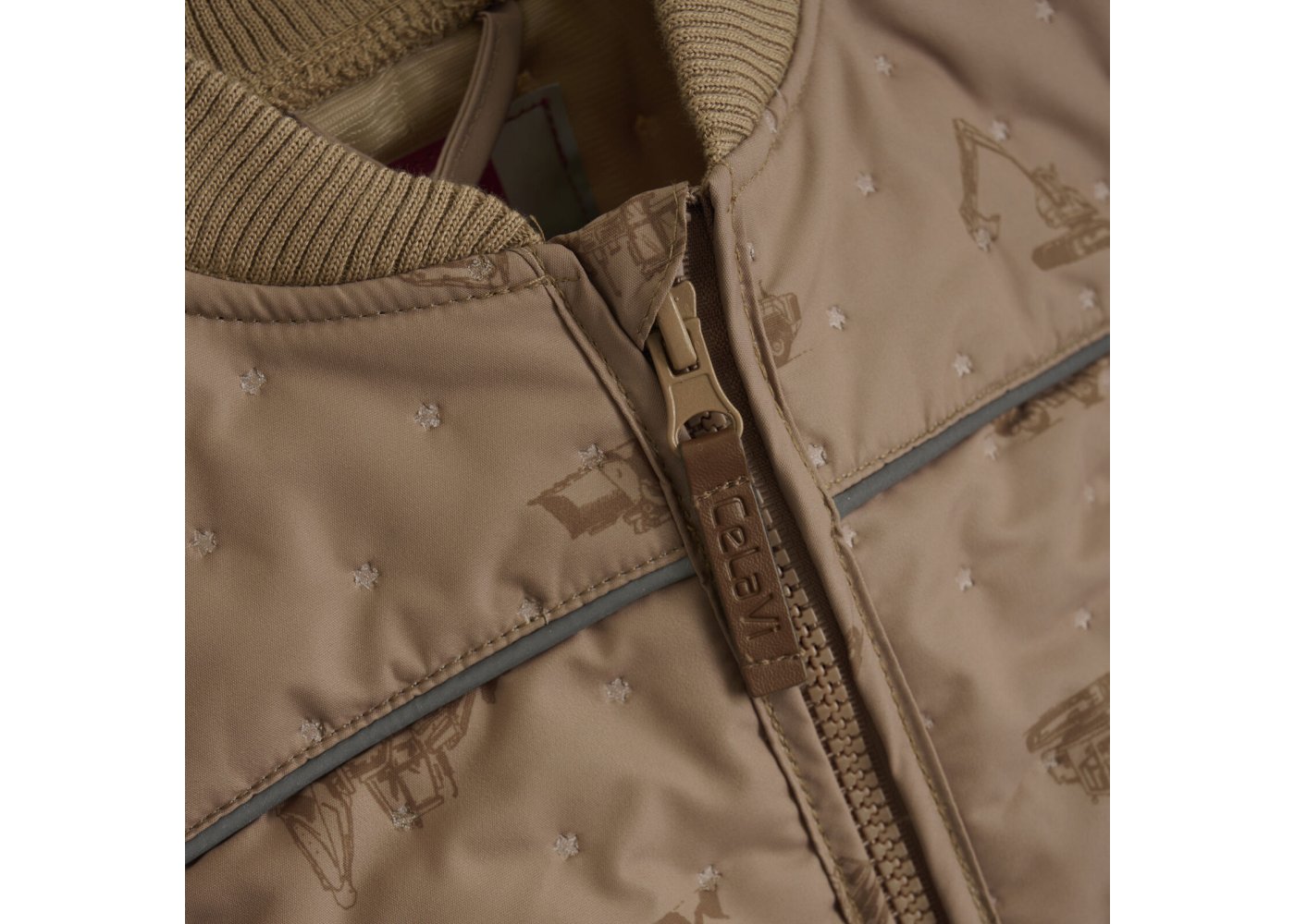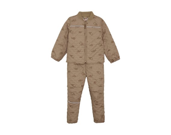 Skønt quiltet termosæt med bukser og jakke med sjove gravemaskiner fra CeLaVi.