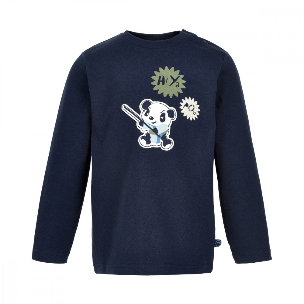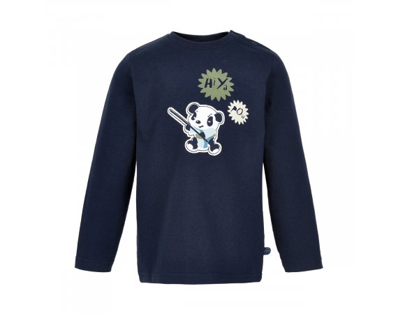 Langærmet T-shirt med påsyet panda tryk