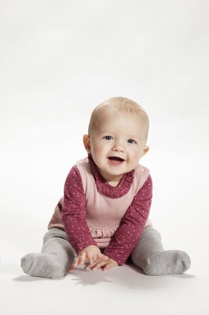 Der fås cardigan og bukser i samme strik.