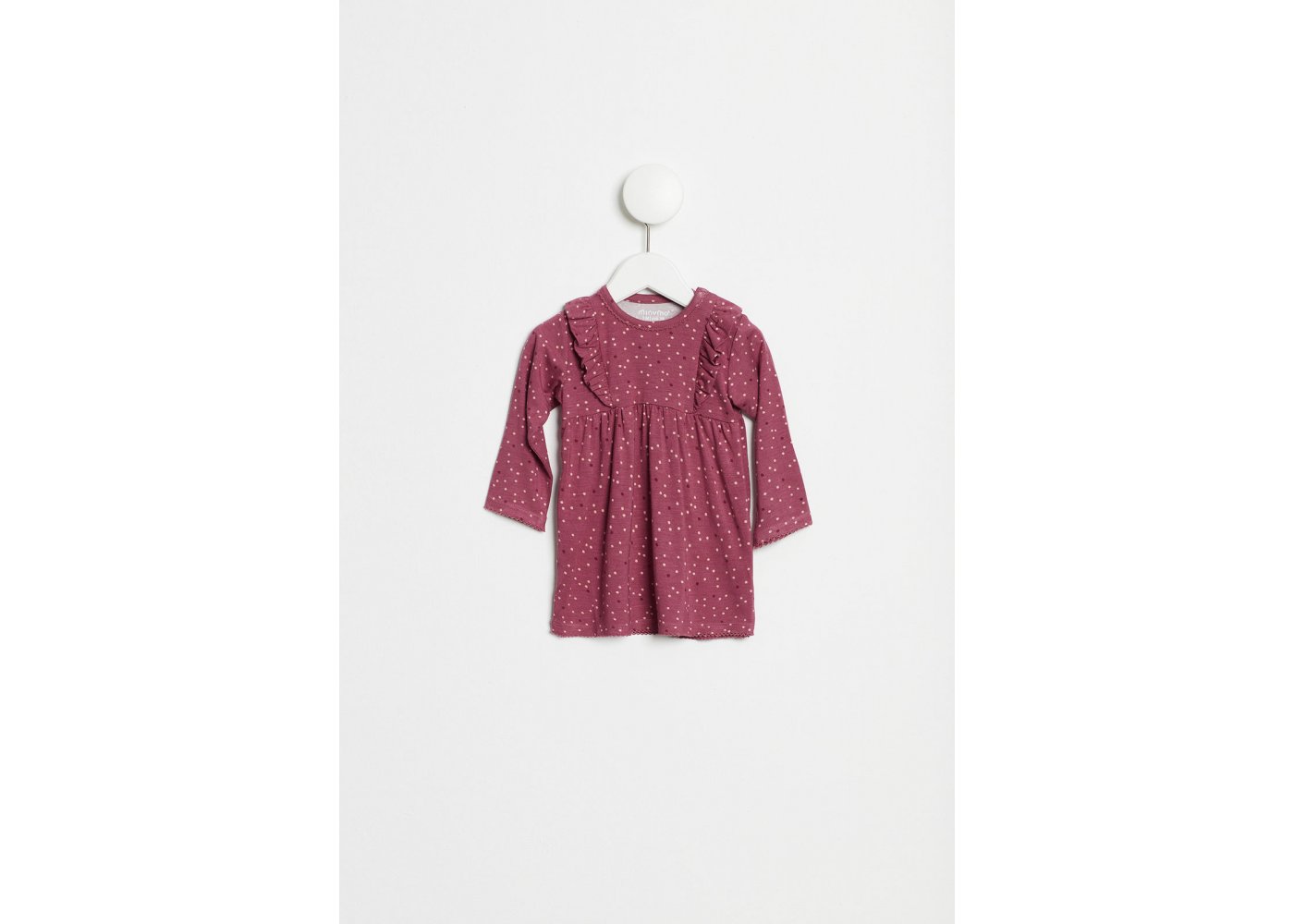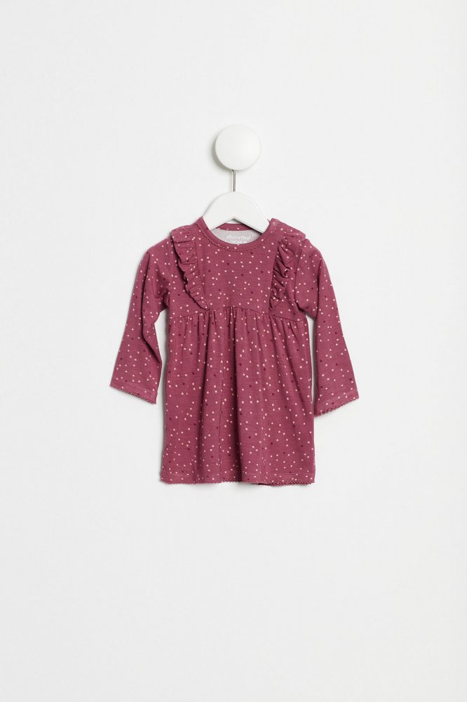 Kjolen har flæser på overdelen over begge skuldre. Desuden overskæring i taljen med rynkeeffekt, der giver et smart look og super pasform. Kjolen afsluttes forneden med en fin hæklet kant.