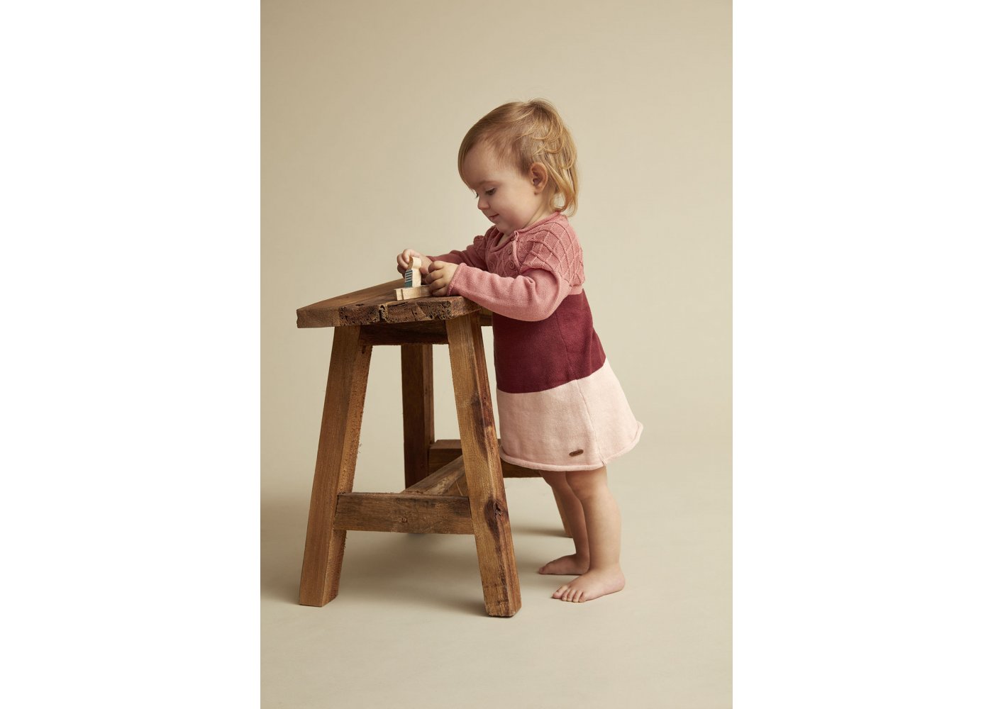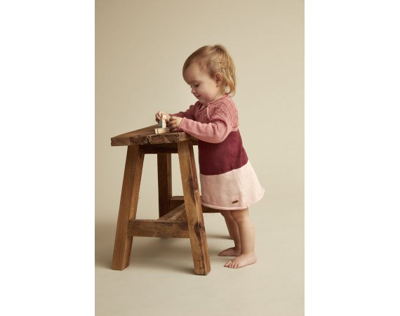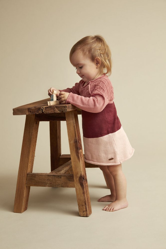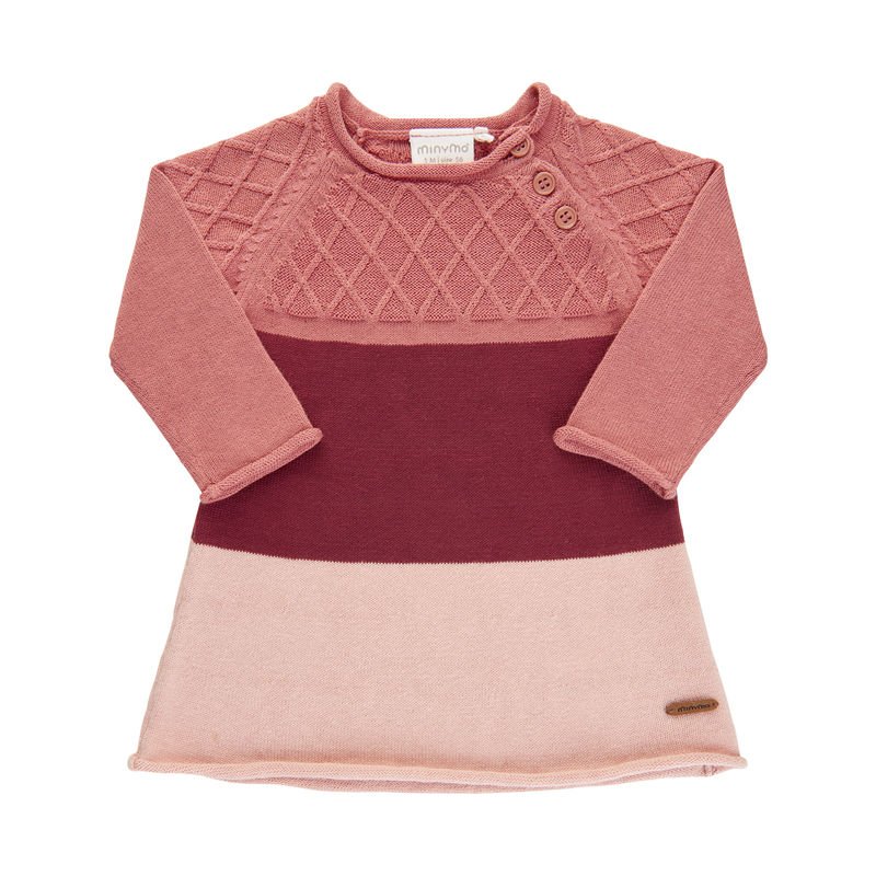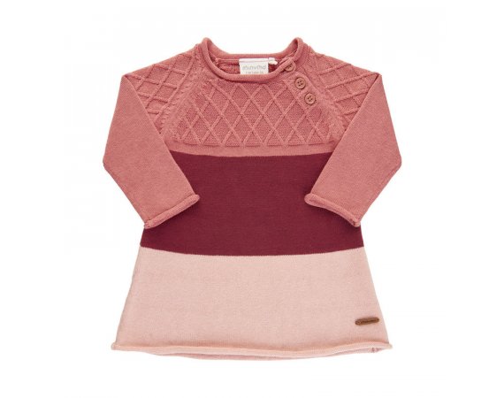Yndig flerfarvet strik kjole med raglan ærmer og flot mønsterTrøjen har et flot ensfarvet rombe mønster øverst og alle åbninger har sødt ombuk.