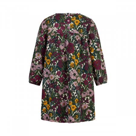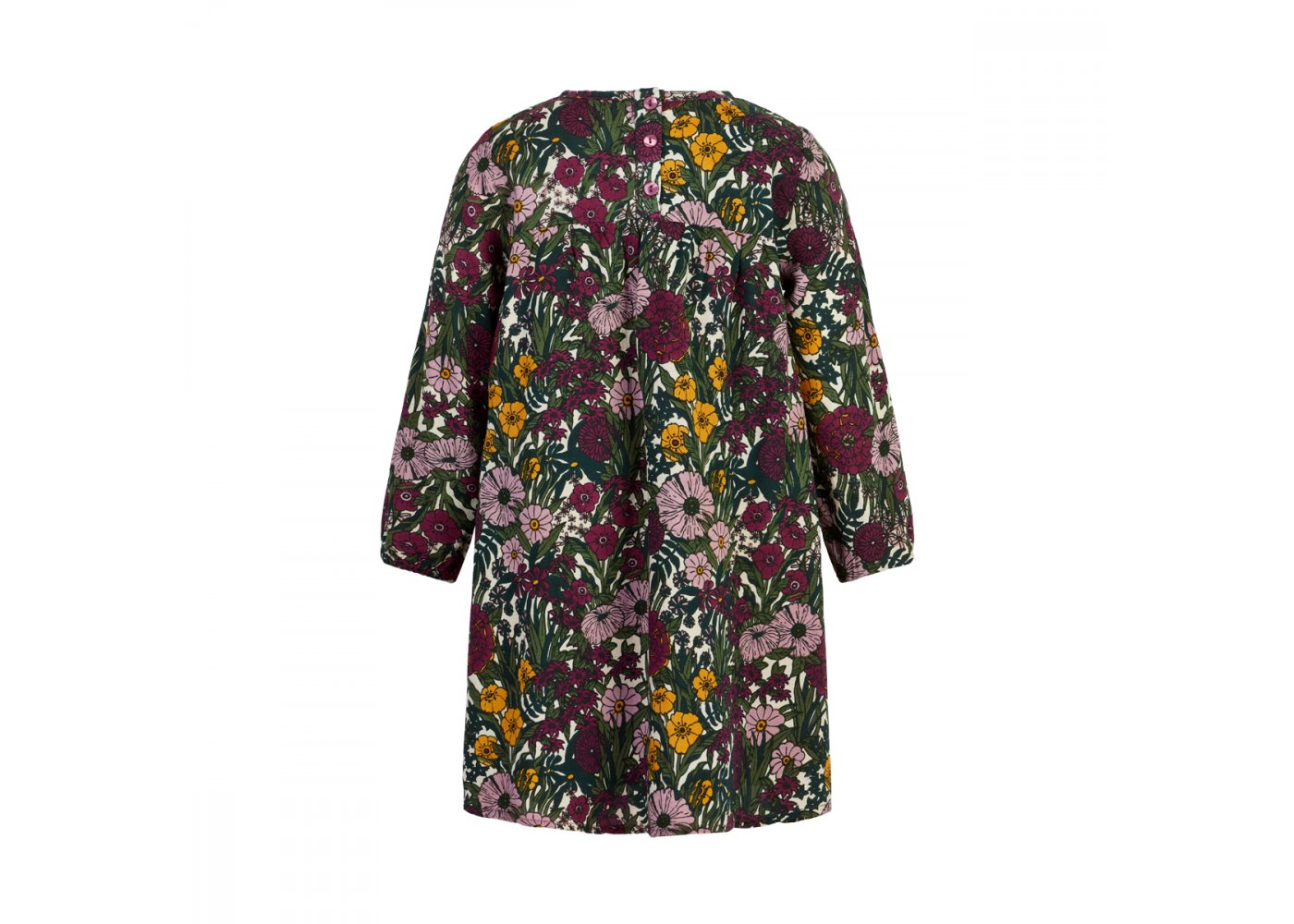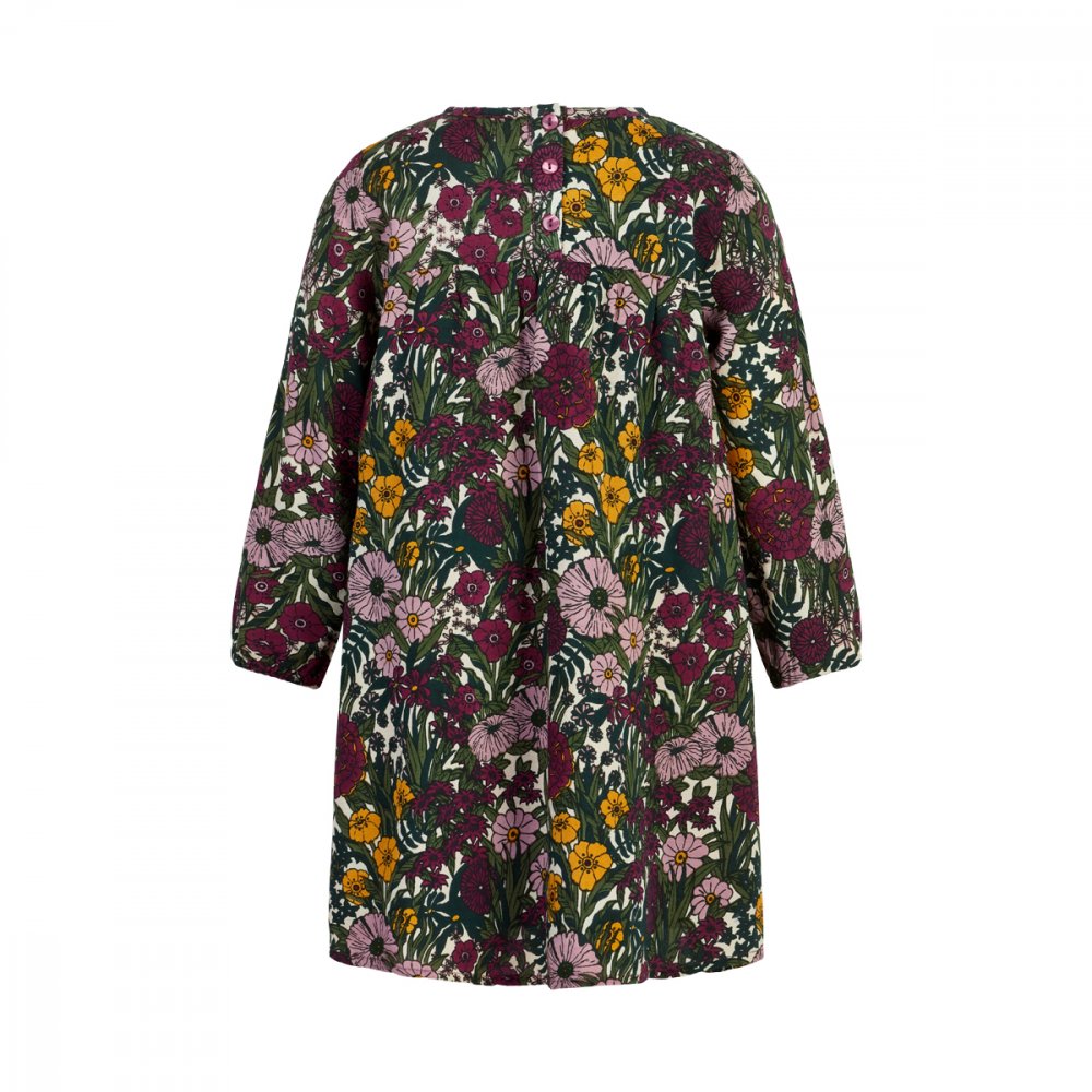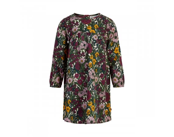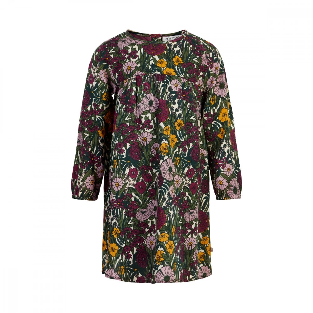 Skøn kjole med blomster og lange ærmer med elastik ved håndled.