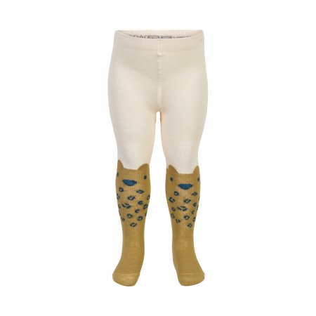 Strømpebukserne har sjove mønstre på benene, og er fremstillet i et blødt og bevægeligt materiale.