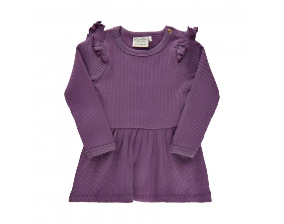 Sød langÊrmet kjole med rund hals og små flÊser over begge skuldre. Kjolen er skåret over i livet, og har et fint rynket skørt.