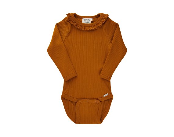 Bodyen har lange ærmer og en yndig flæse i halsudskæring.
