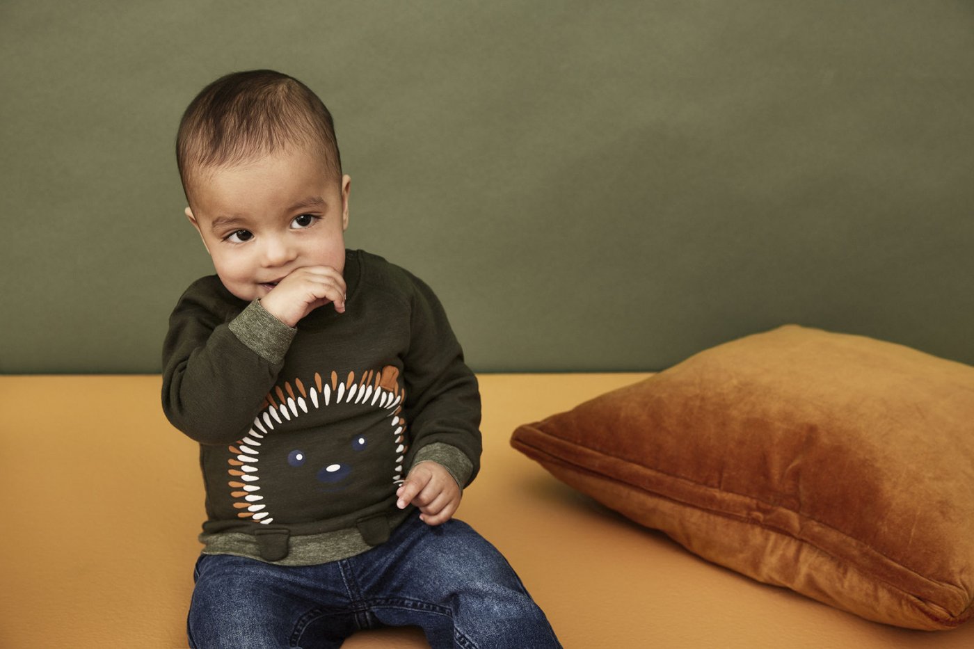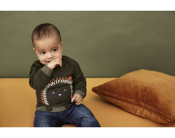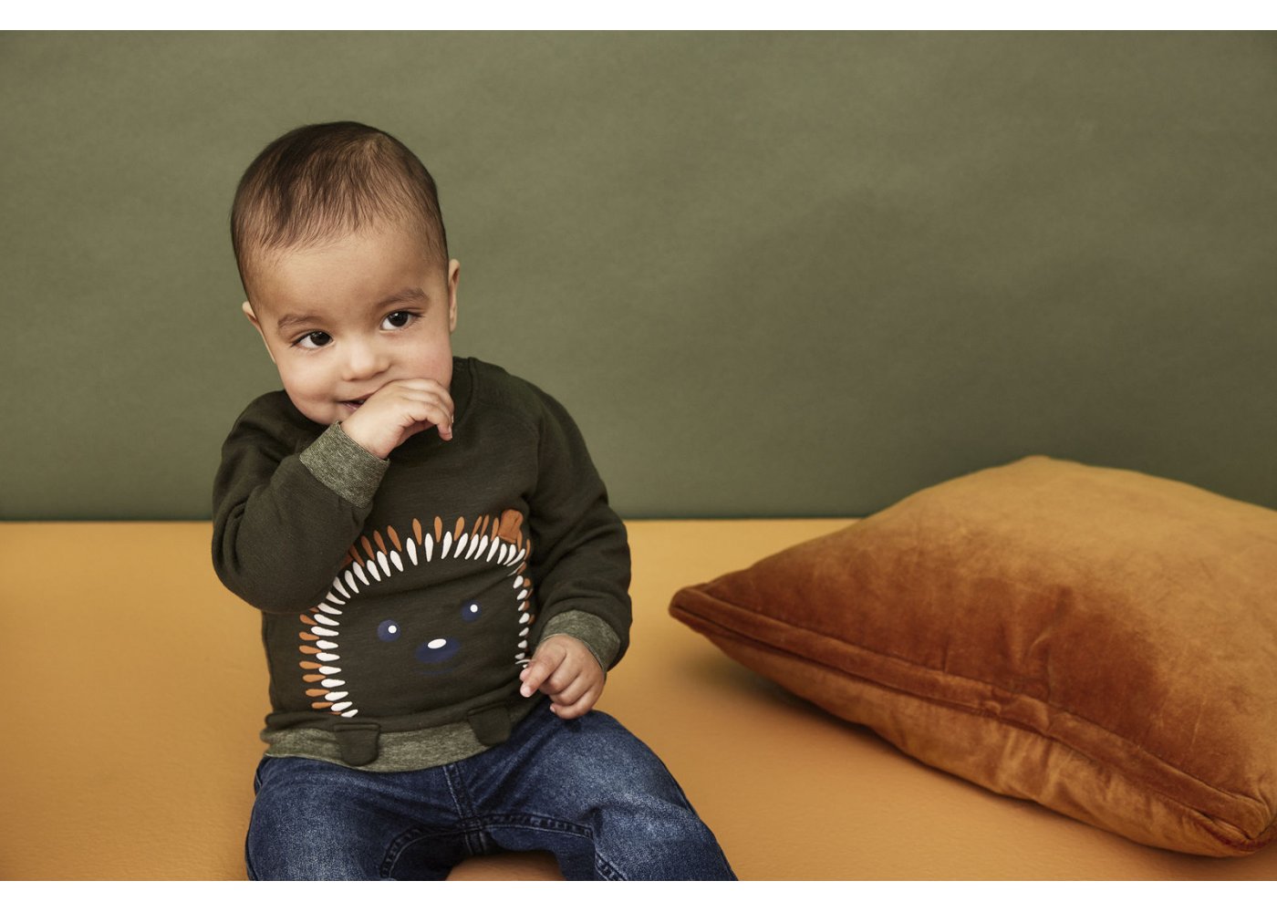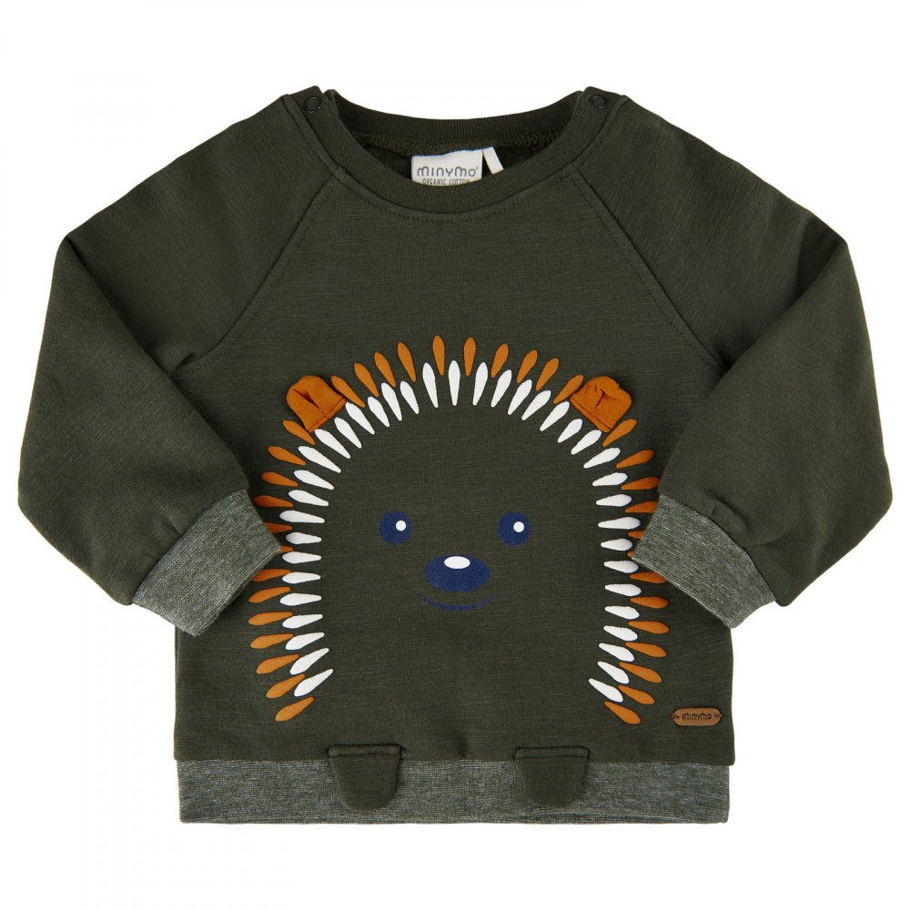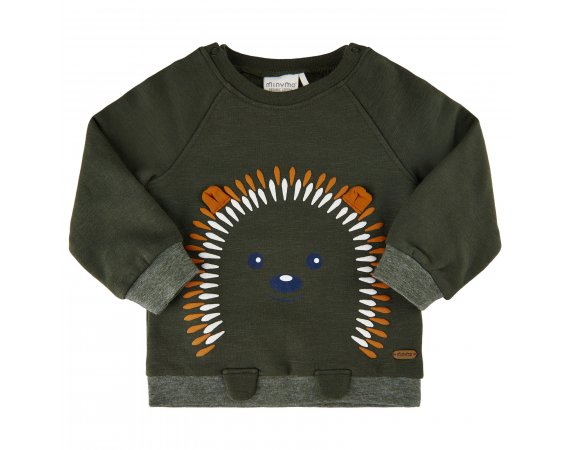 Smart grøn sweatshirt med sødt pindsvin print på brystet fra Minymo.
