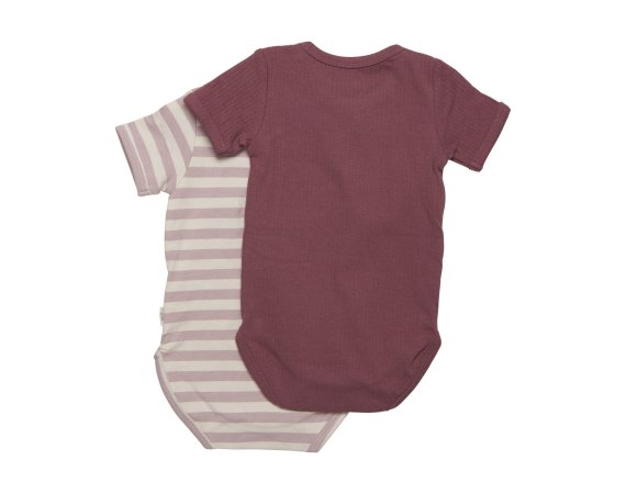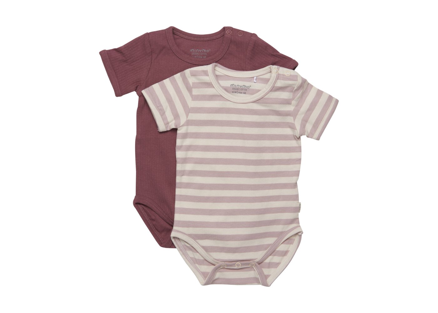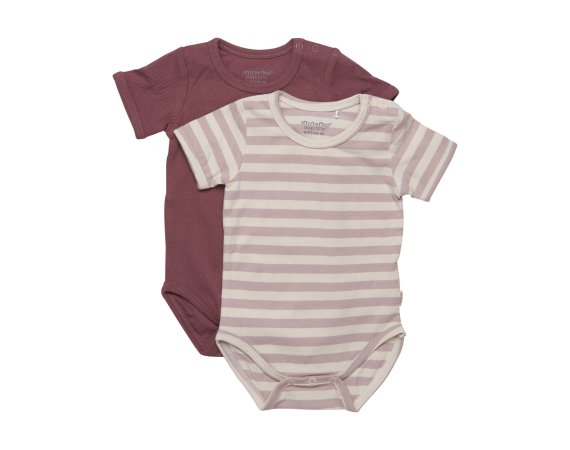 Kortærmede bodyer fra Minymo, rød og rosa.