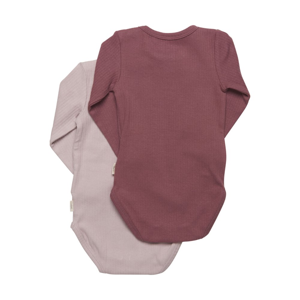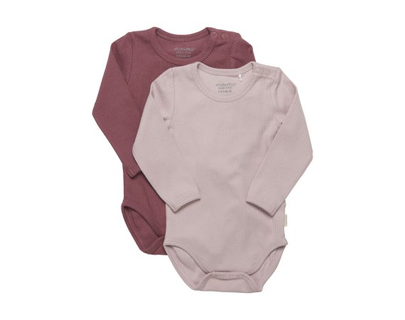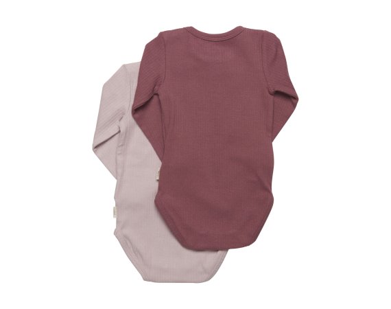 To fine langærmede bodyer fra Minymo, rød og rosa.