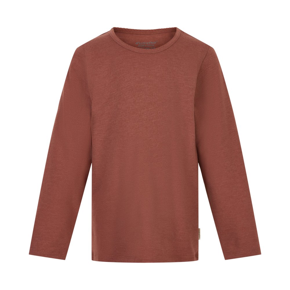 Flotte og praktiske langærmede t-shirts fra Minymo, brun, rosa, lilla.