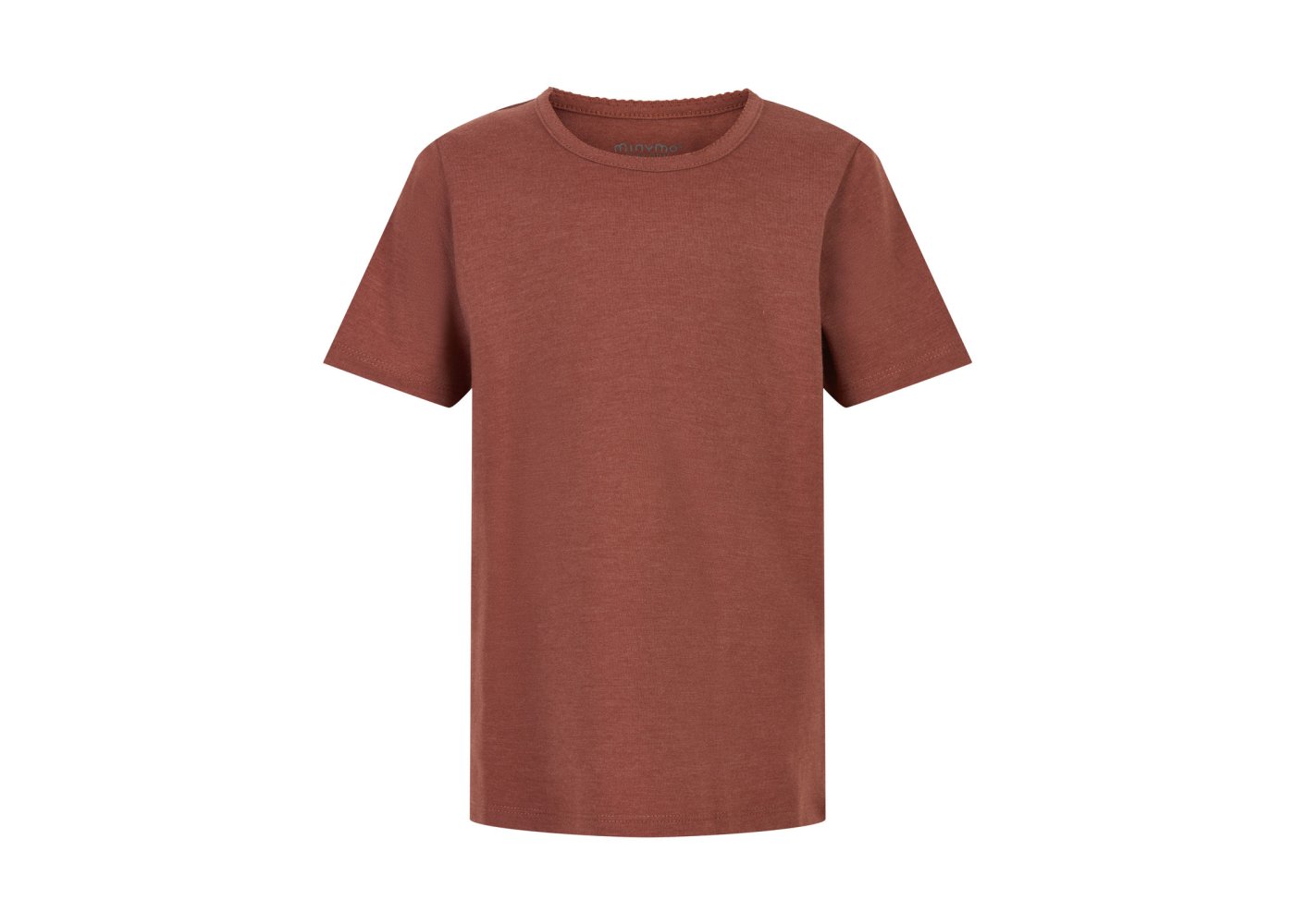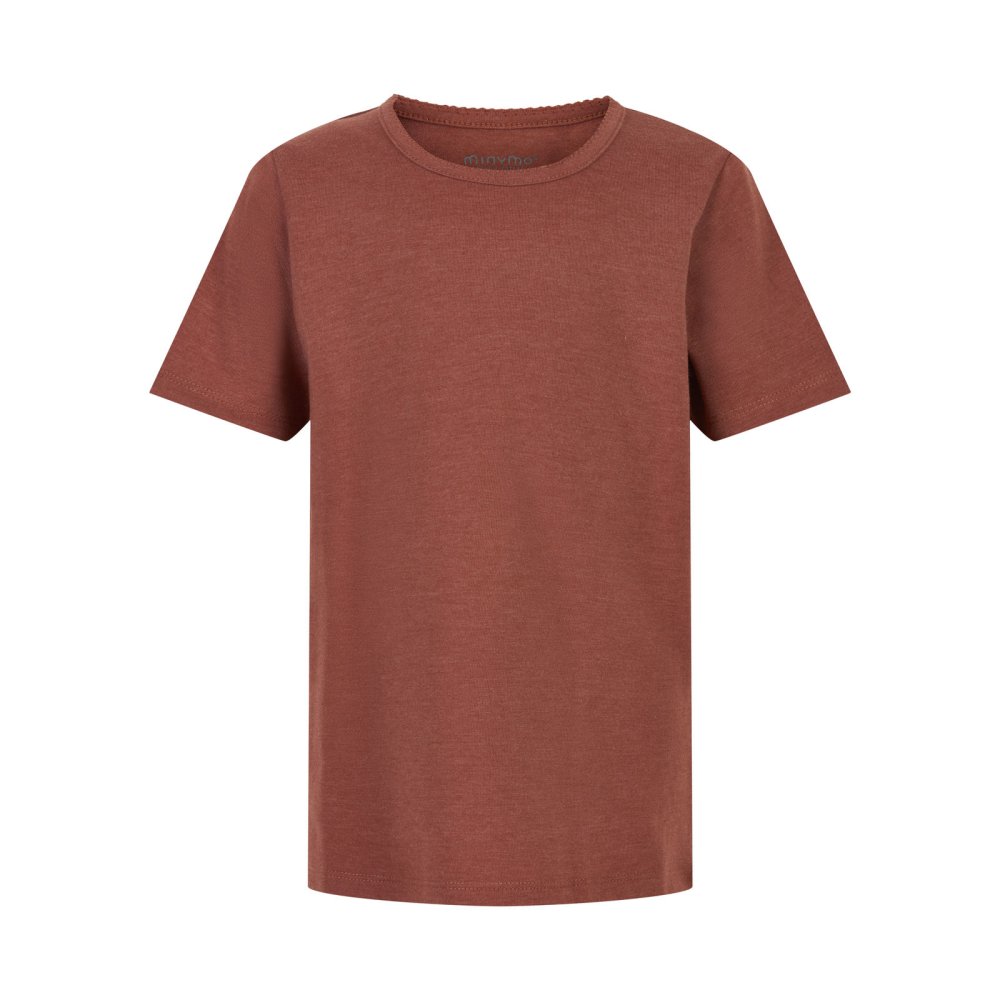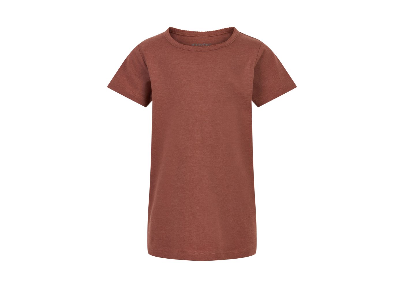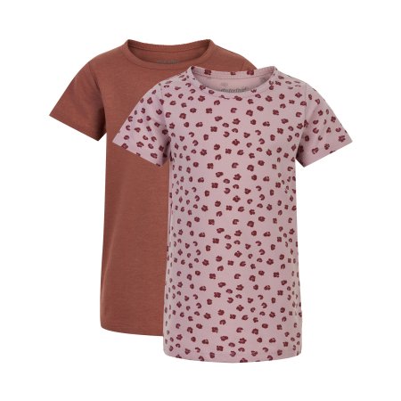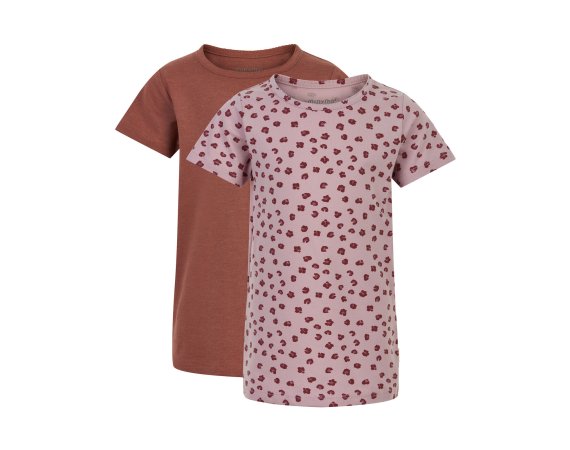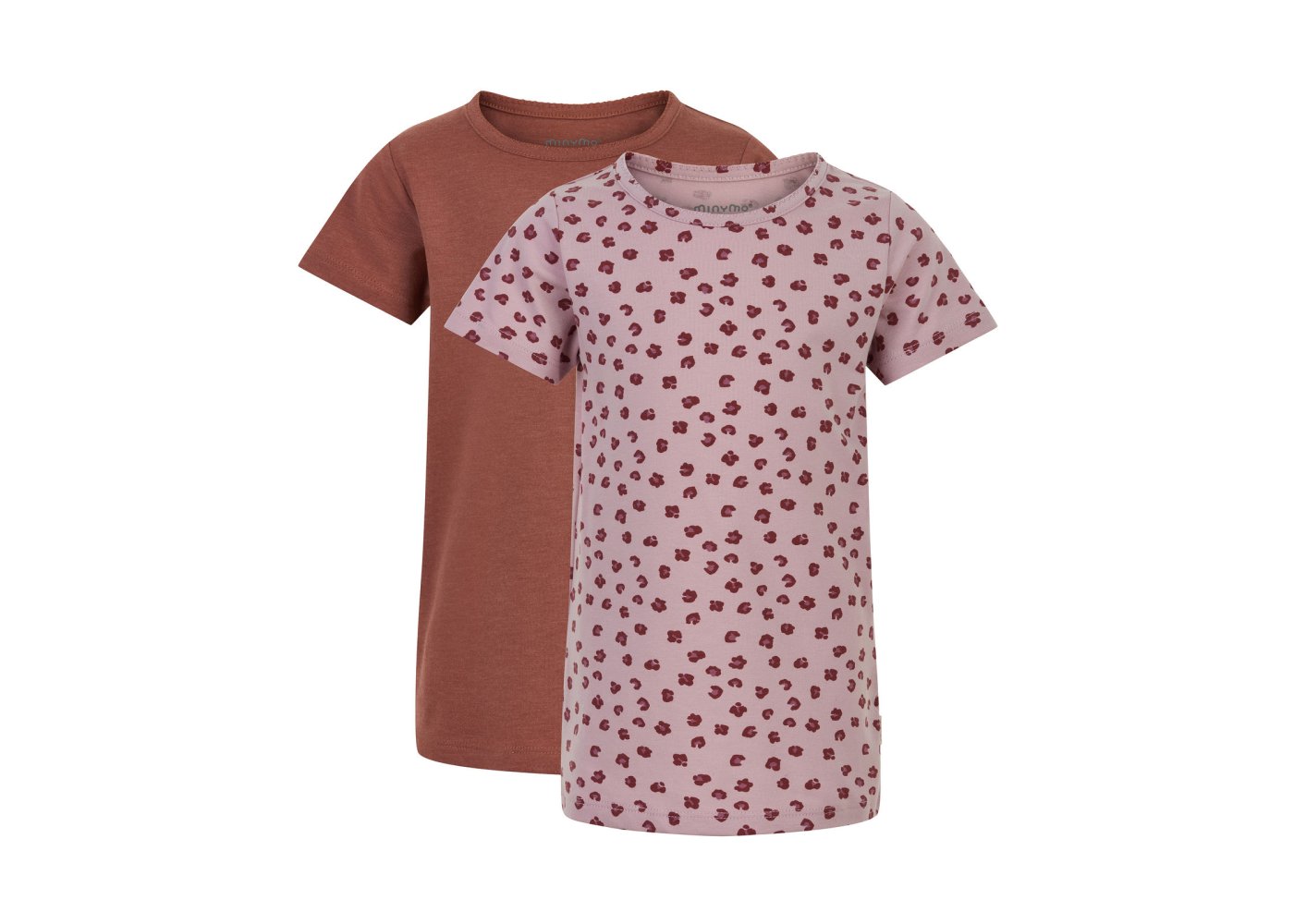Flotte og praktiske kortærmede t-shirts fra Minymo, brun, rosa, lilla.