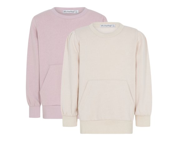 Sweatshirts i flotte farver fra Minymo, rosa og beige.