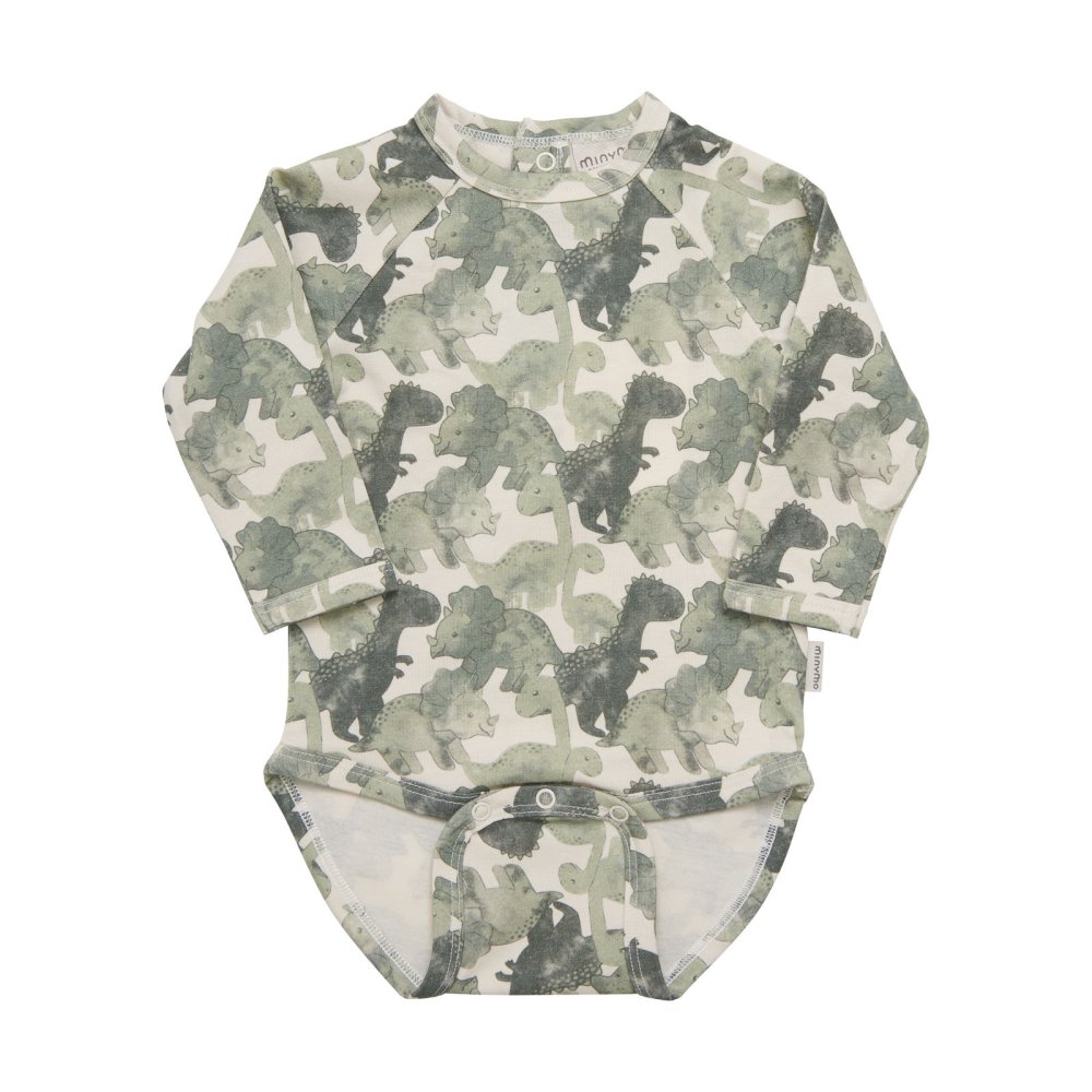 Flot langærmet body med dinosaurprint fra Minymo.