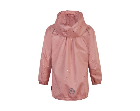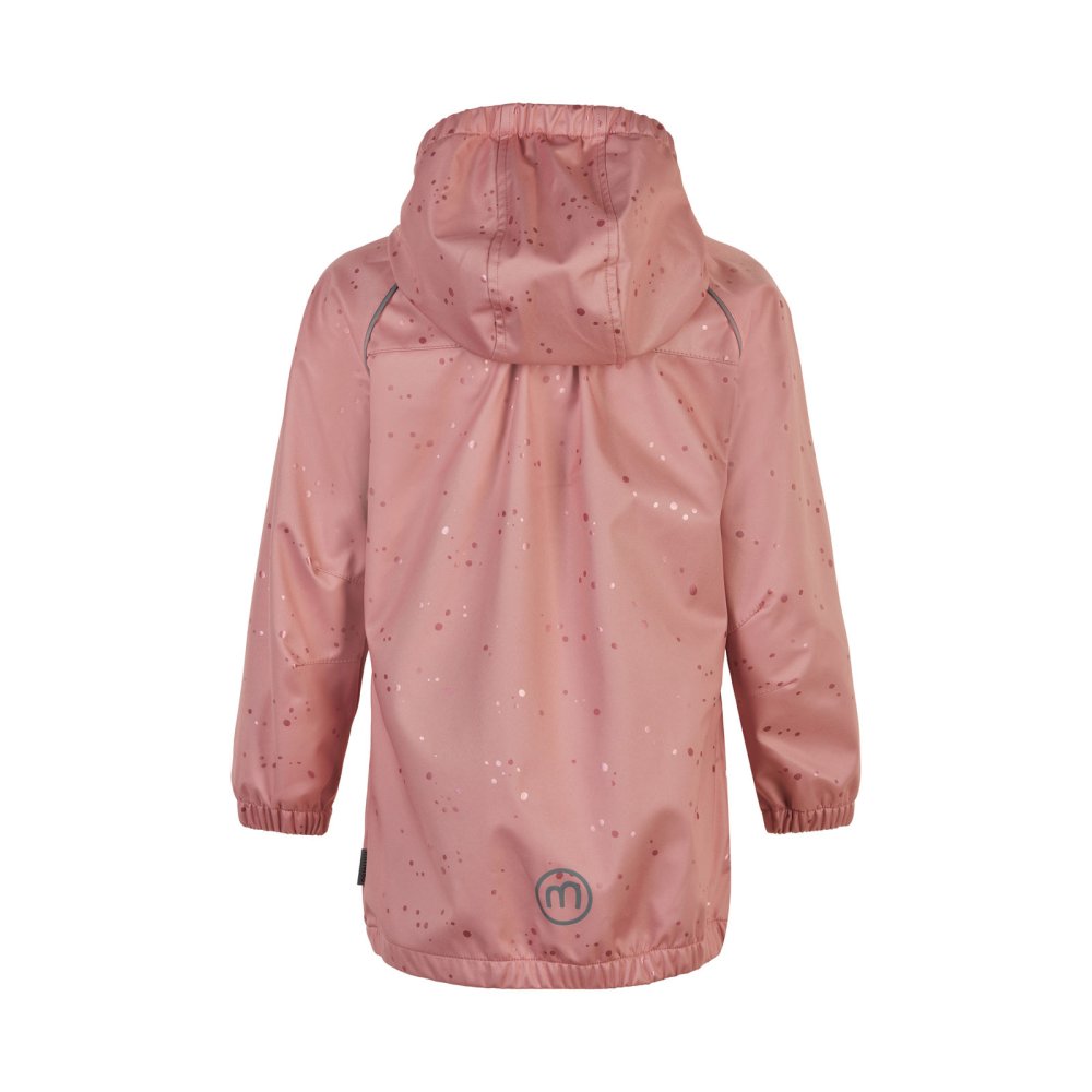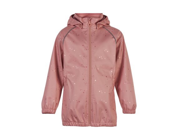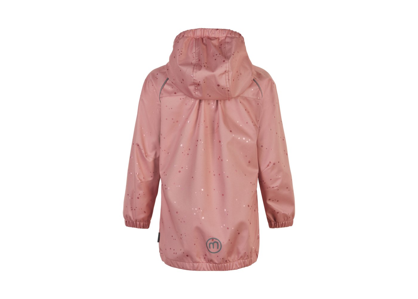 Smart og praktisk softshell jakke i rosa med mørke prikker fra Minymo.