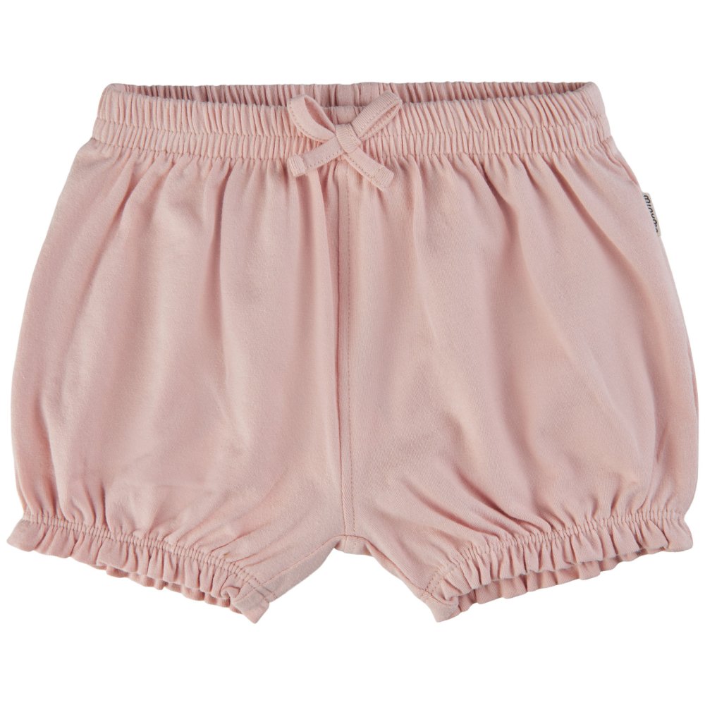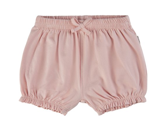 Bløde jersey shorts i rosa med elastik med bindebånd i livet og elastik i bukseben, der tilsammen giver et sødt og poset look.