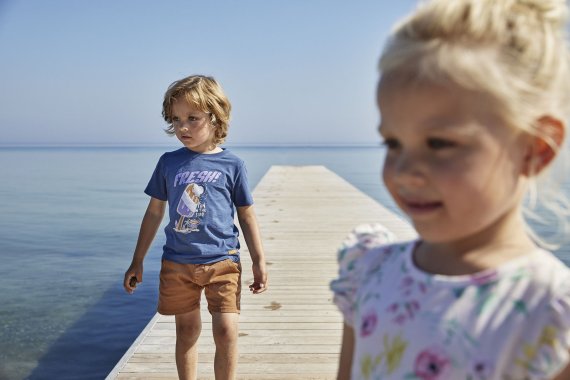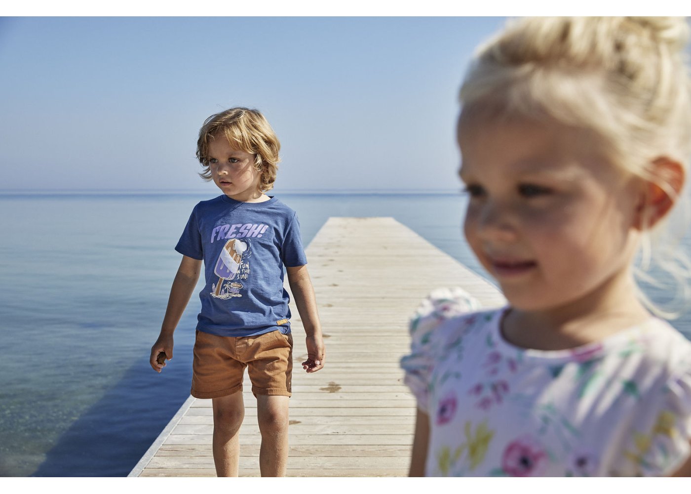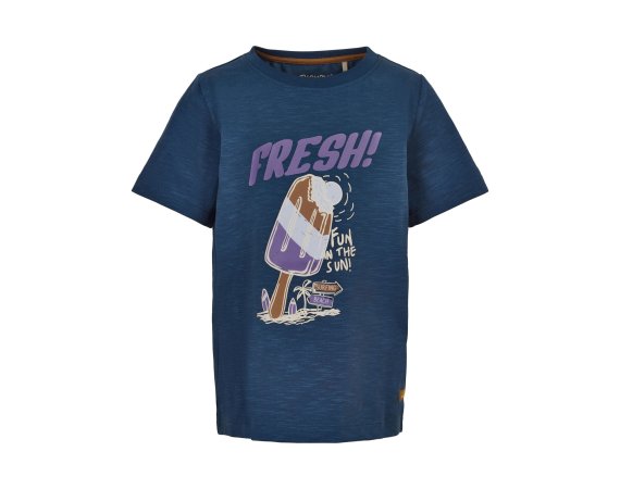 Flot blå t-shirt med is motiv foran.T-shirten har korte ærmer, en rund halsudskæring og er fremstillet i en lækker bomuldsjersey.