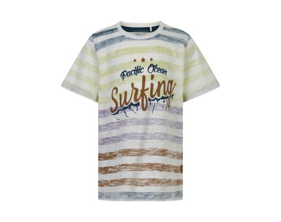 Flot hvid t-shirt med striber i flotte kontrastfarver.