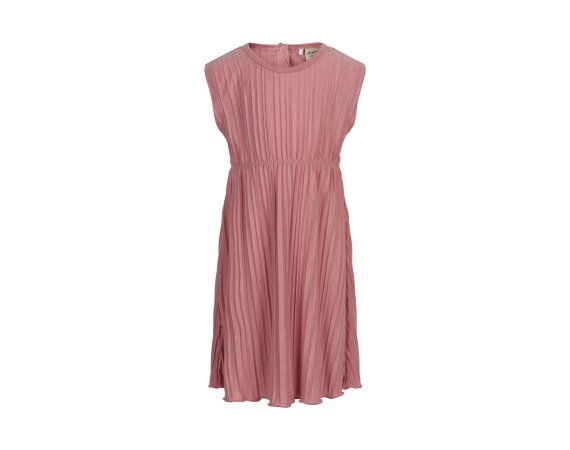 Kjolen har læg og en fin tynd elastik i livet.Kjolen er fremstillet i en dejlig blød bomulds polyester.