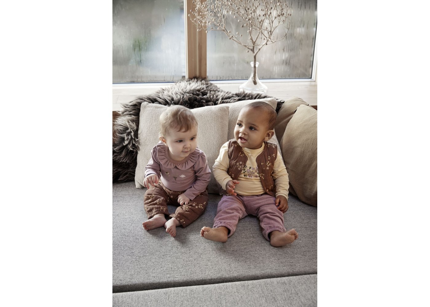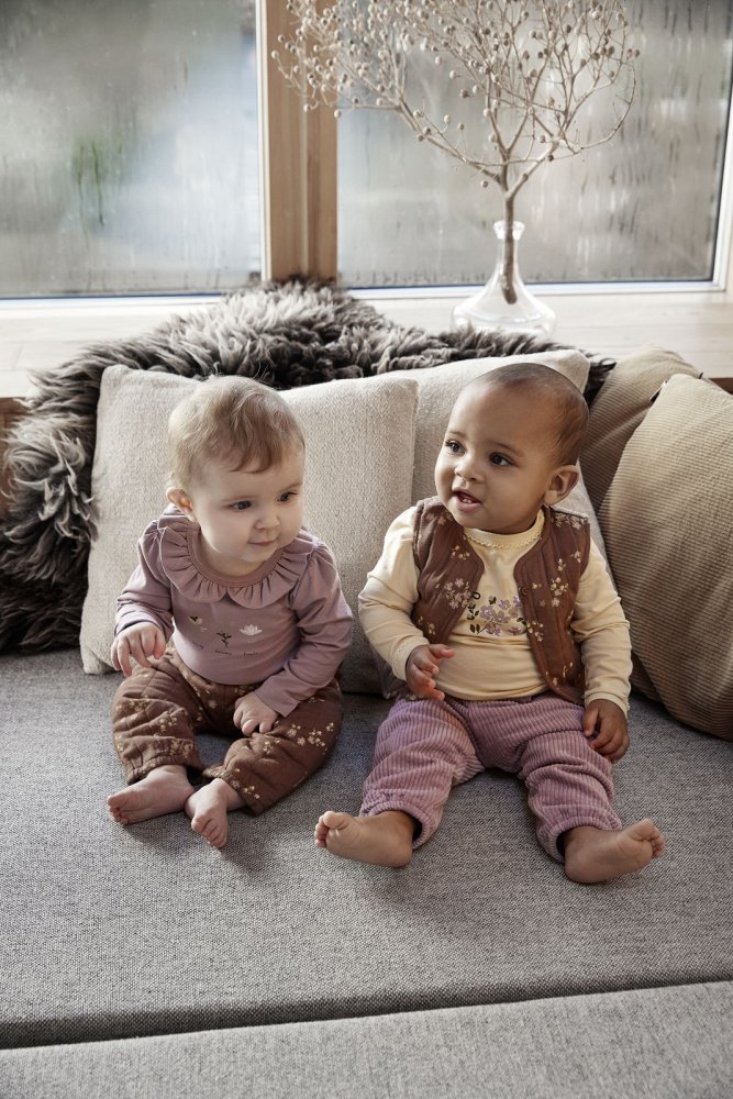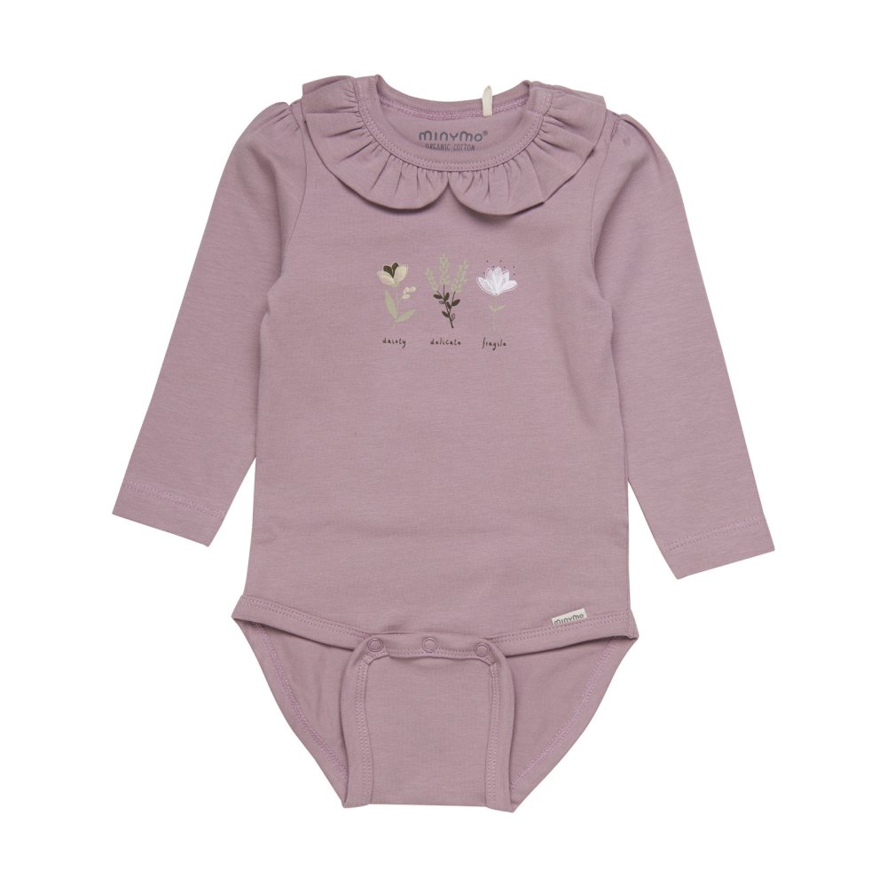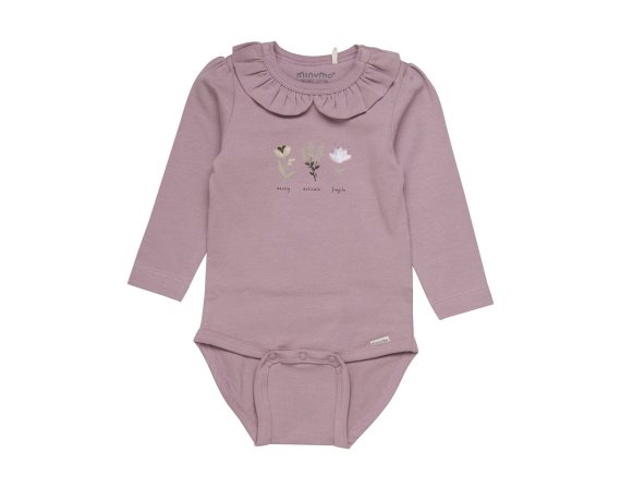 Yndig jersey body med fine blomster foran på brystet fra Minymo.