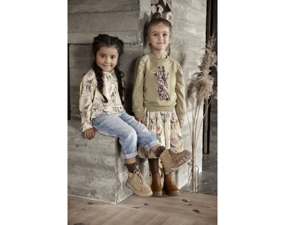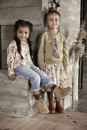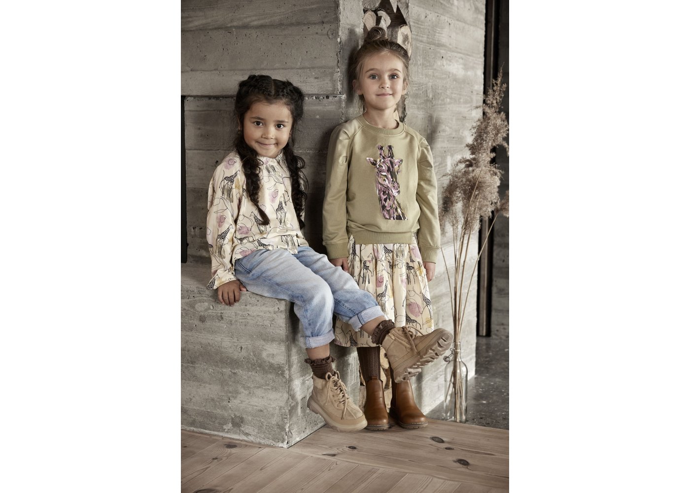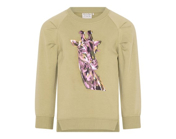 Smart grøn sweatshirt med girafprint fra Minymo.Sweatshirten har raglanærmer med fine læg og er fremstillet i en lækker børstet bomuld.
