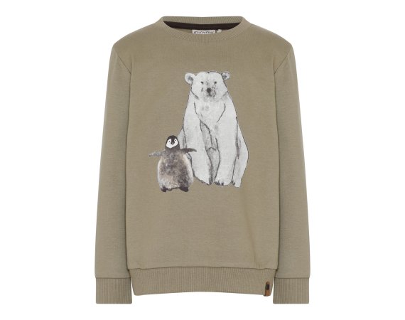 Fin langærmet sweatshirt med print af isbjørn og pingvin foran fra Minymo.