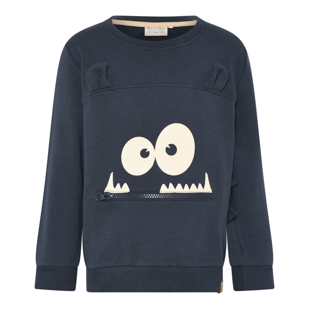 Sej sweatshirt med monsterprint foran fra Minymo.