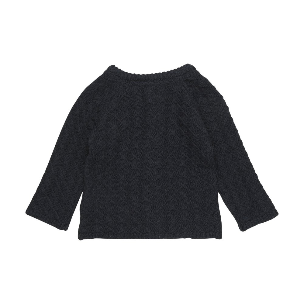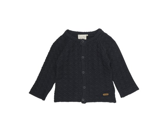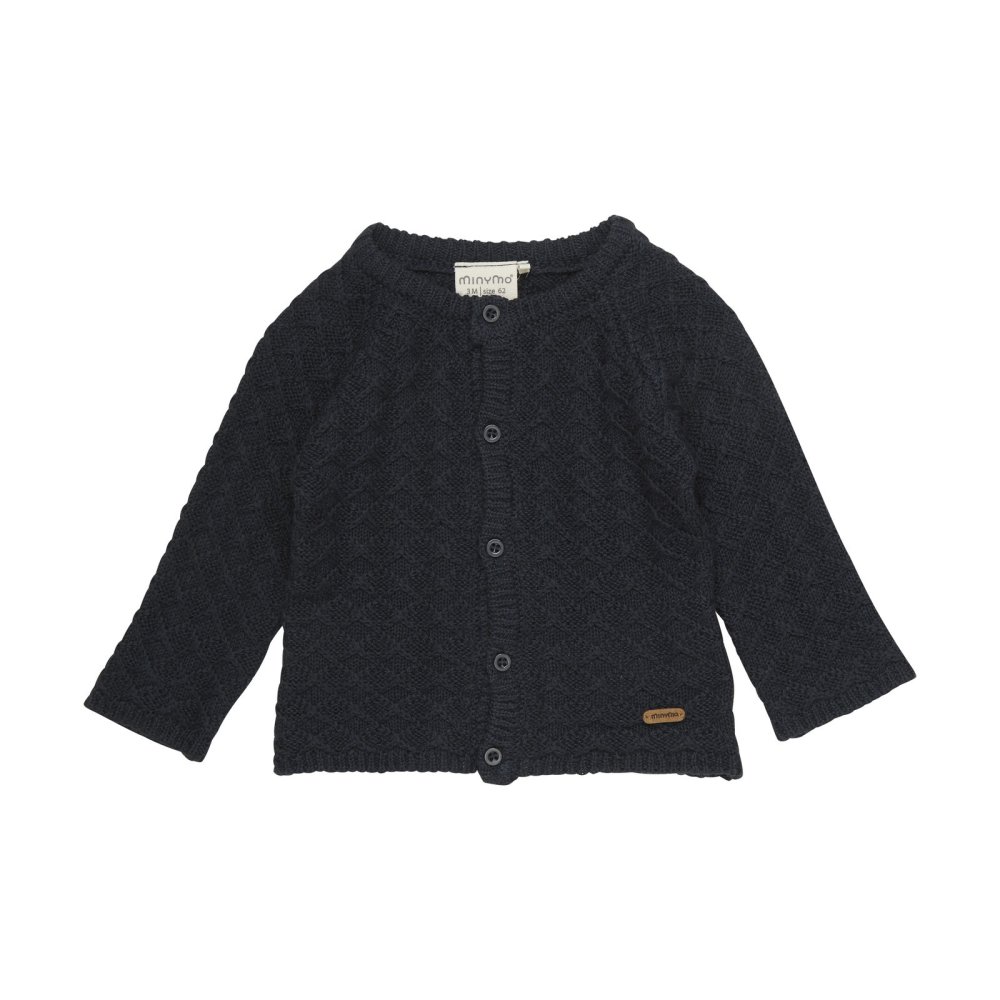 Fin blå strik cardigan fra Minymo med flot mønster.