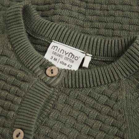 Trøjen har ribkanter i alle åbninger og lukkes med knapper ned foran.Cardiganen er bredt anvendelig både til shorts og bukser.