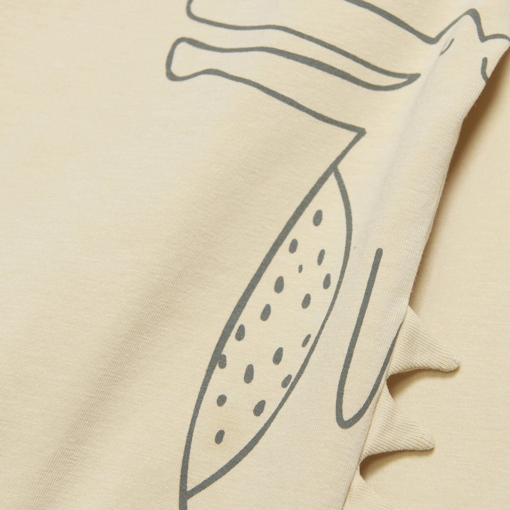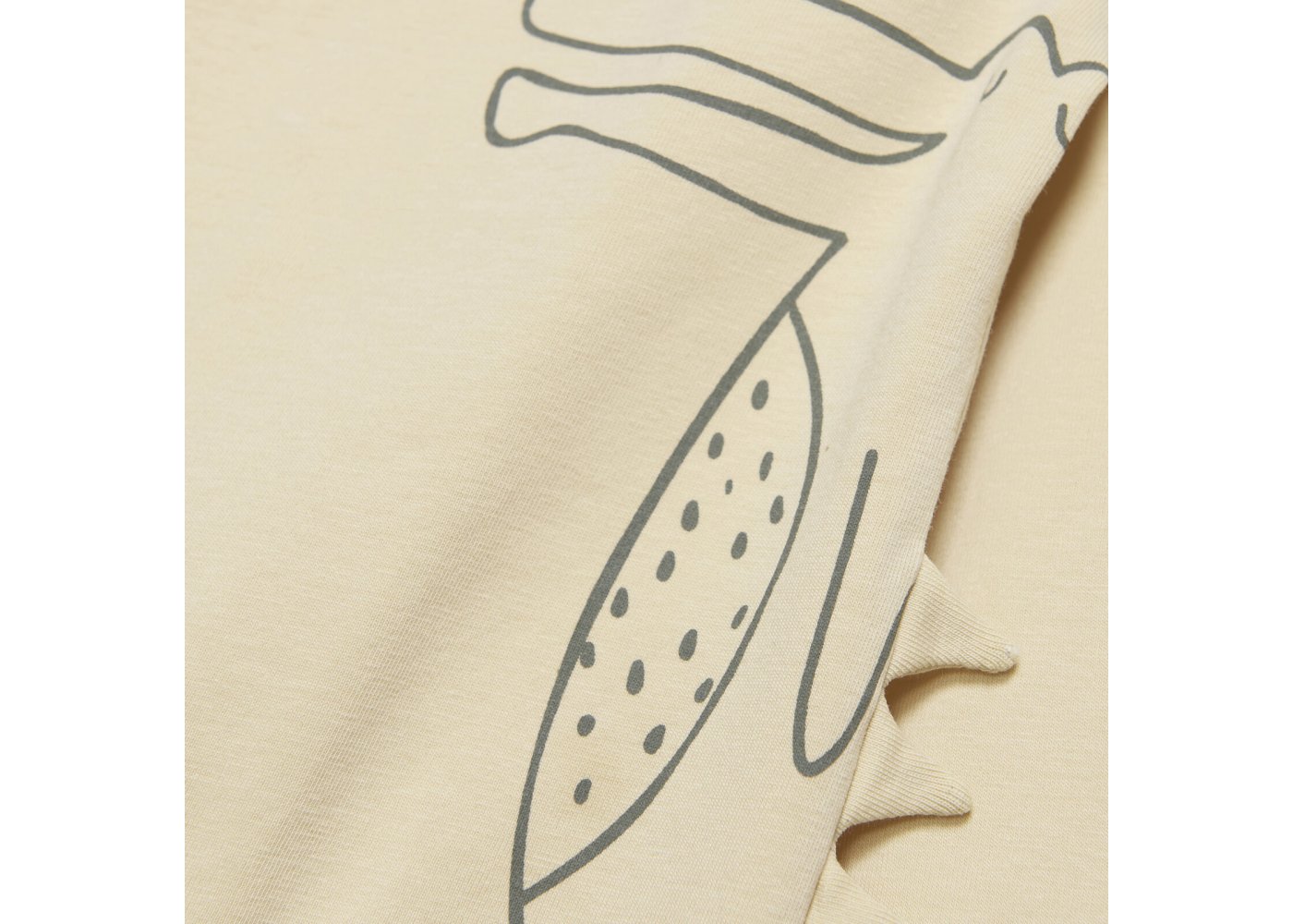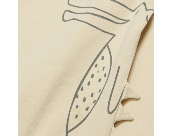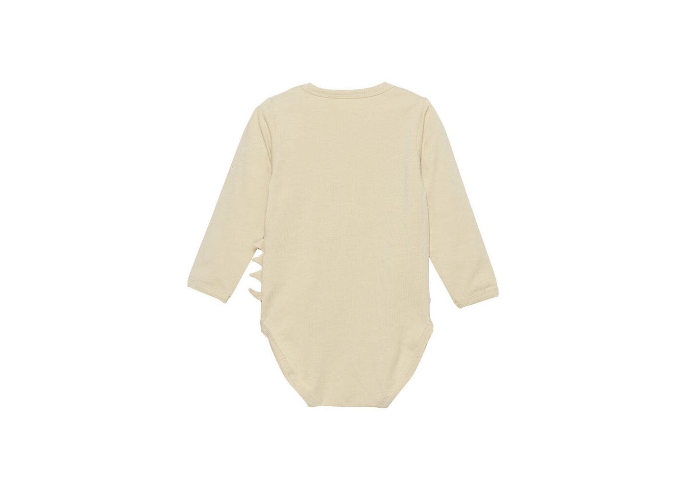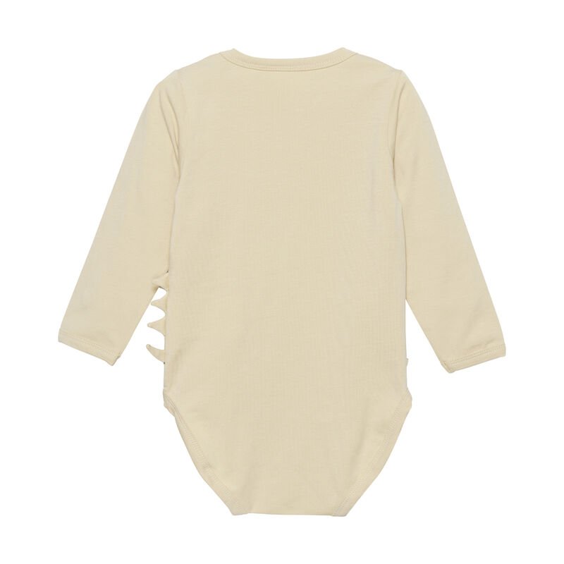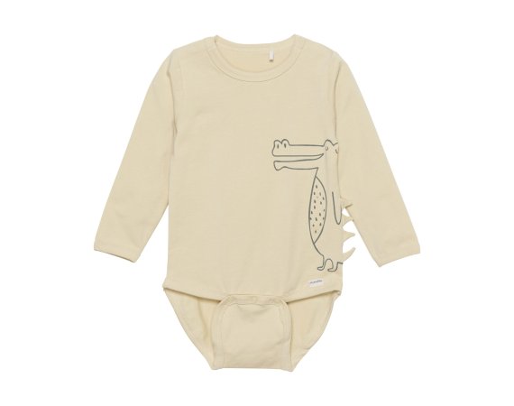 Sjov body med rund halsudskæring og krokodille med takker på maven.
