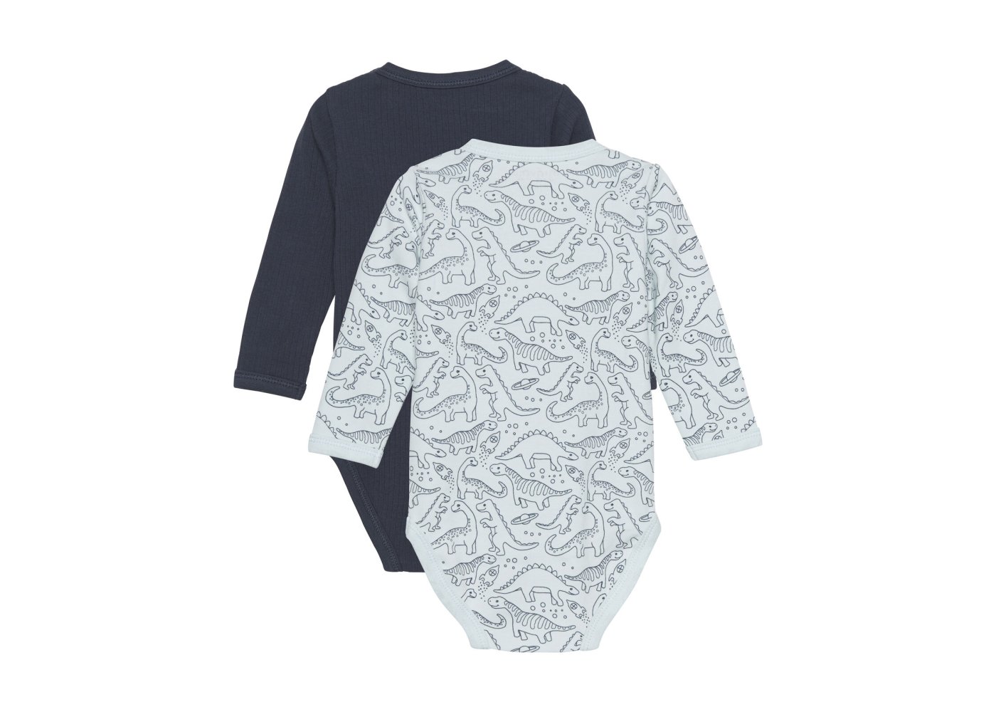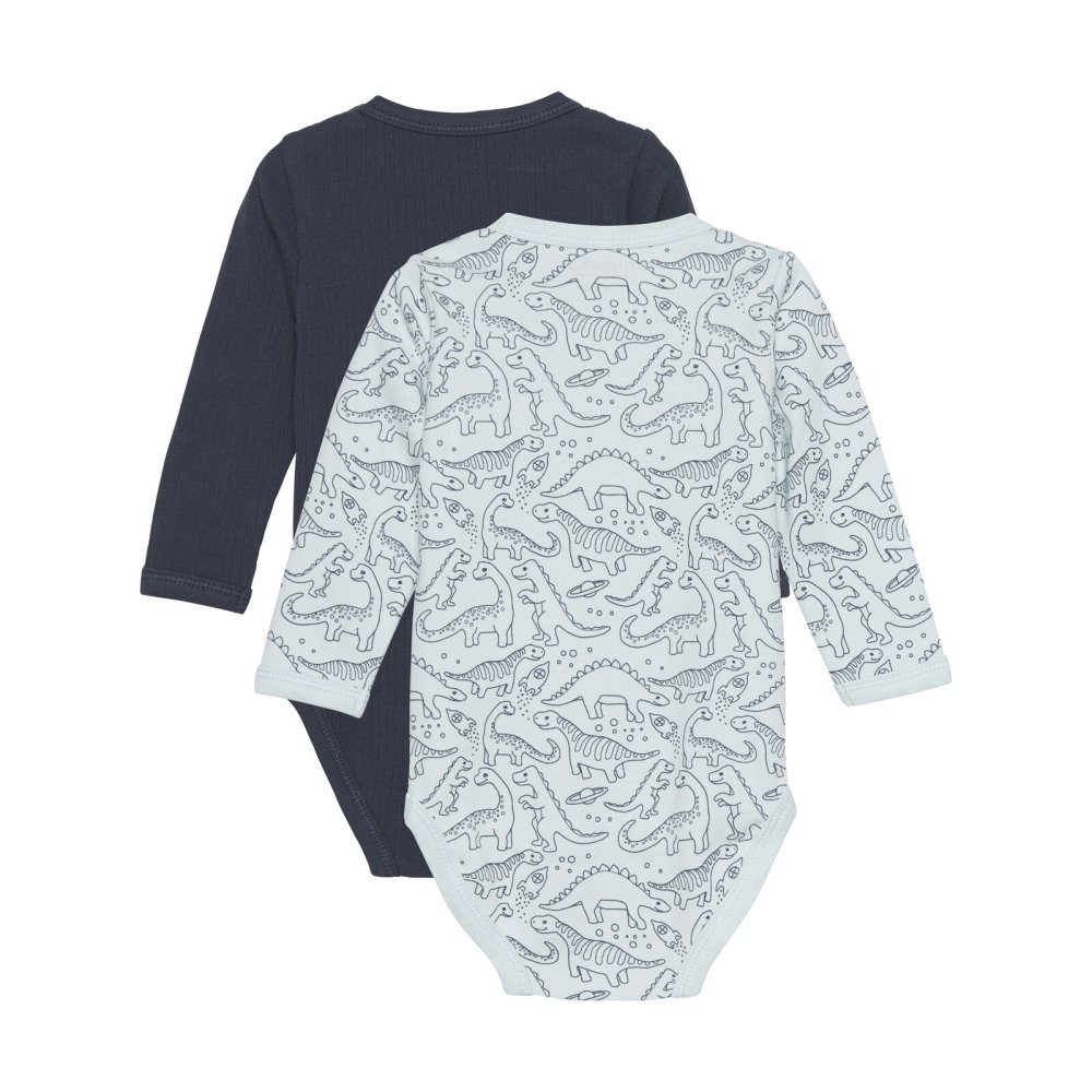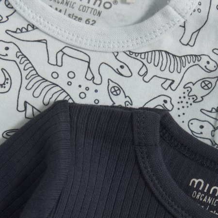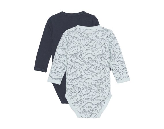 Bodyerne lukkes med trykknapper på skulder og imellem ben og er fremstillet i en lækker slidstærk interlock-jersey.